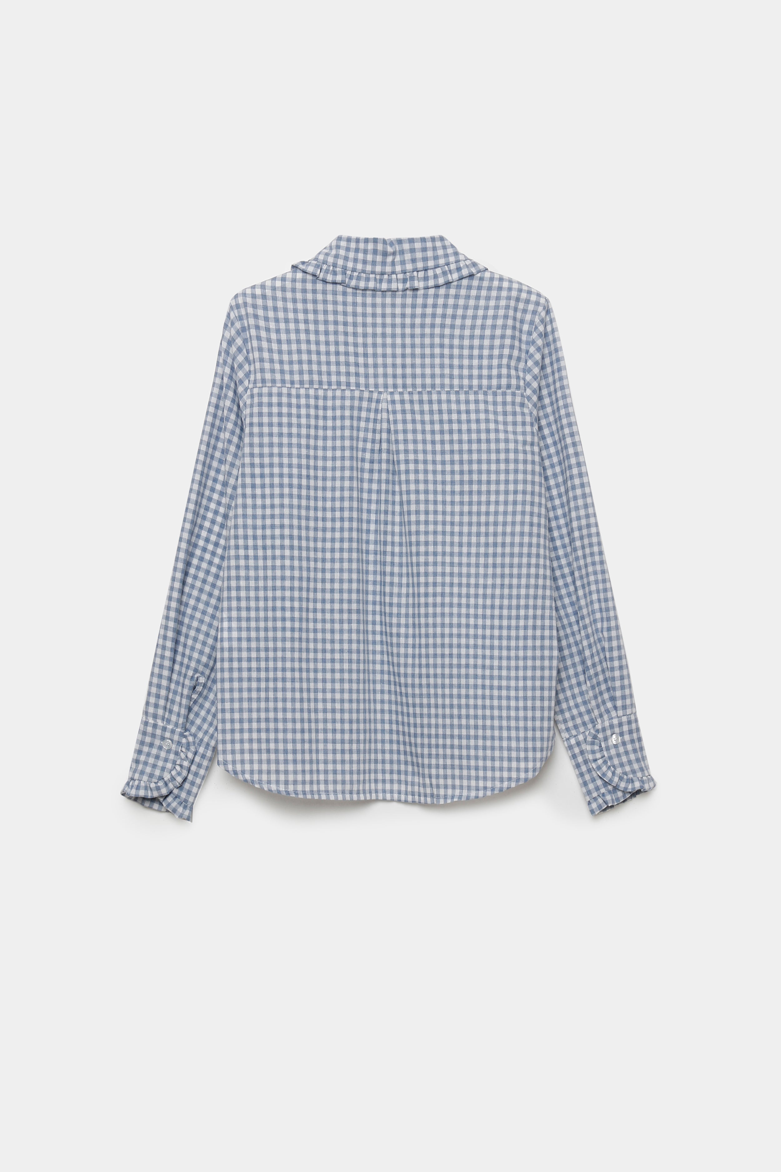 Tejido mezcla de algodón. Cuello bobo. Manga larga. Cierre con botones.