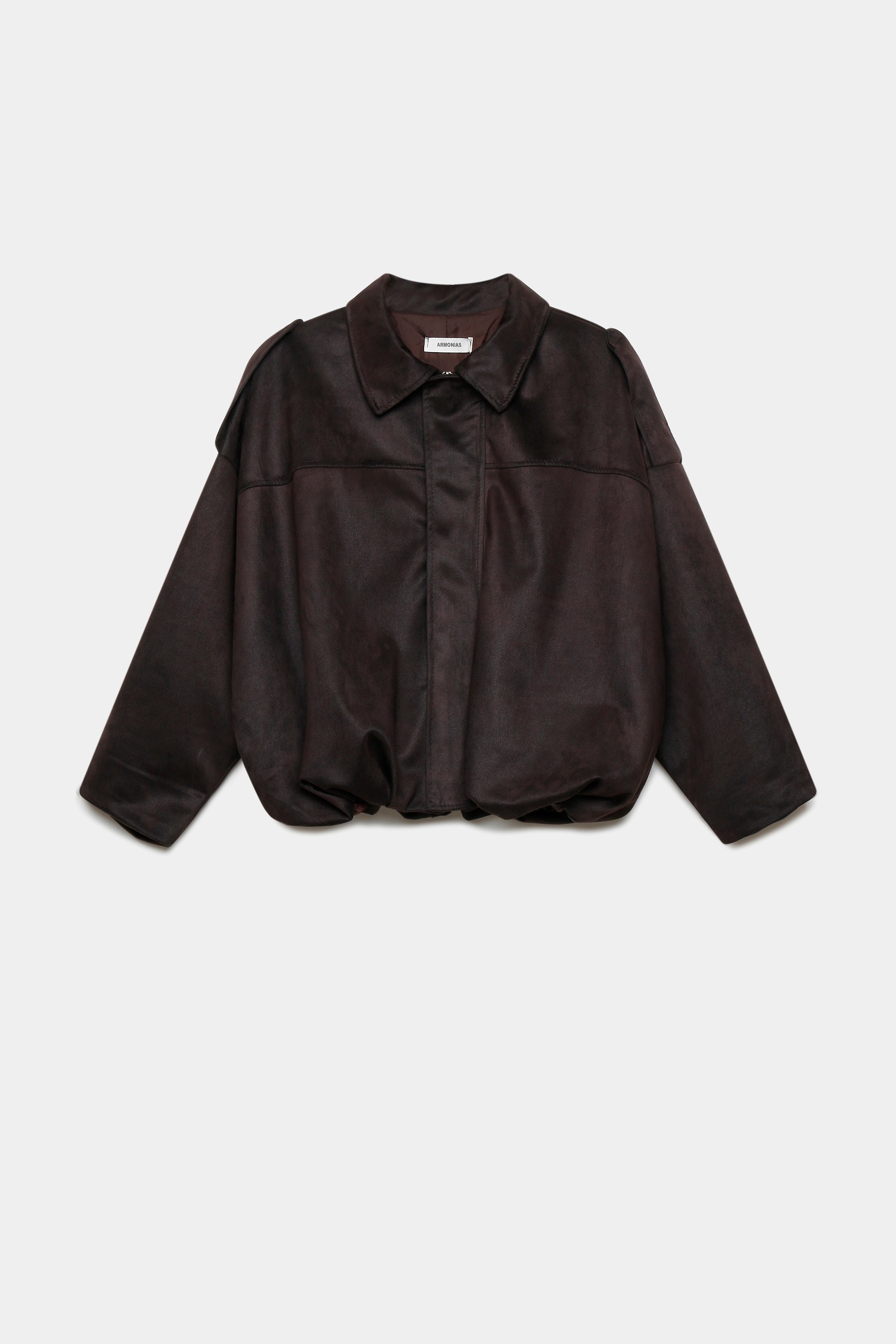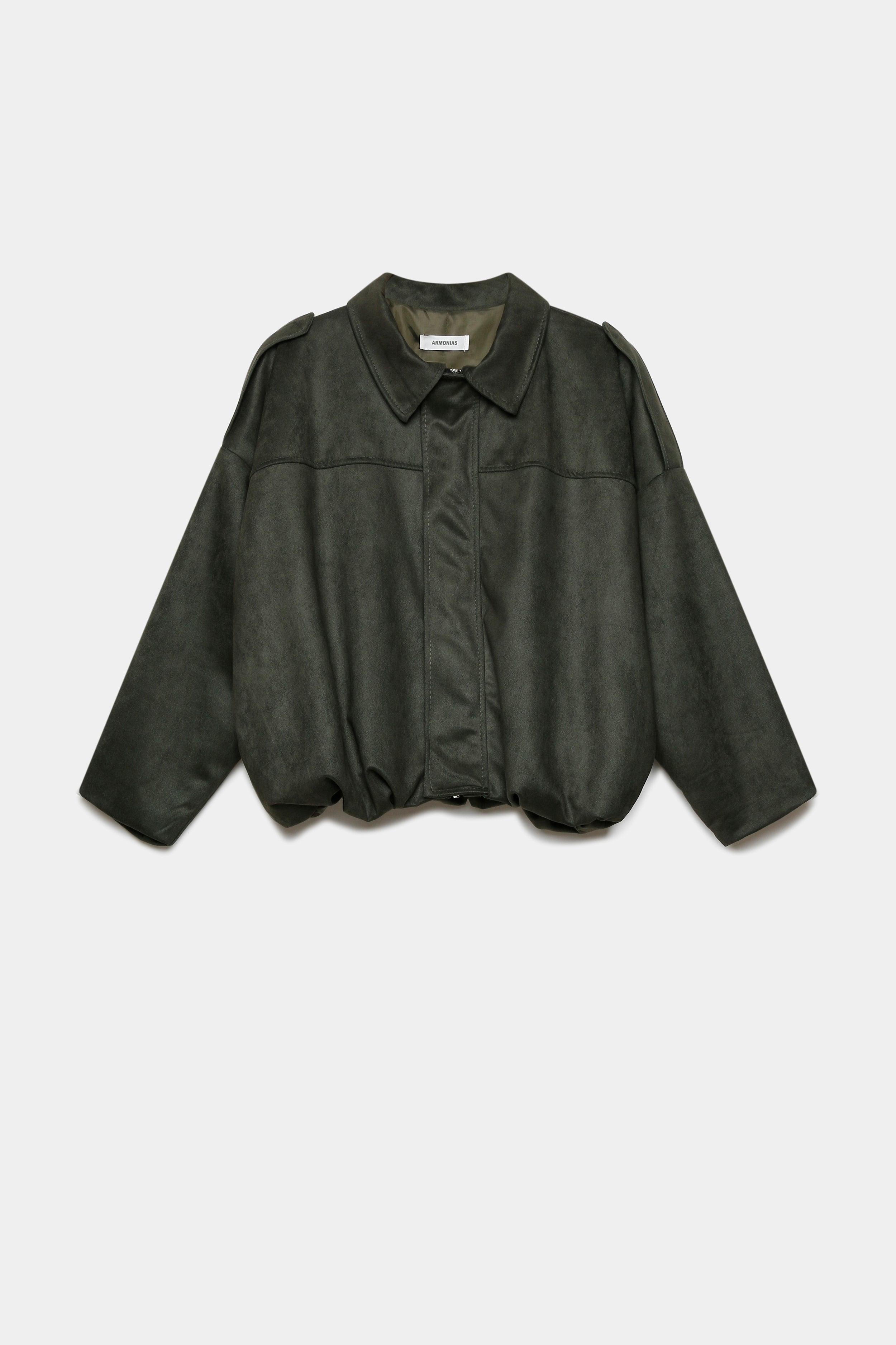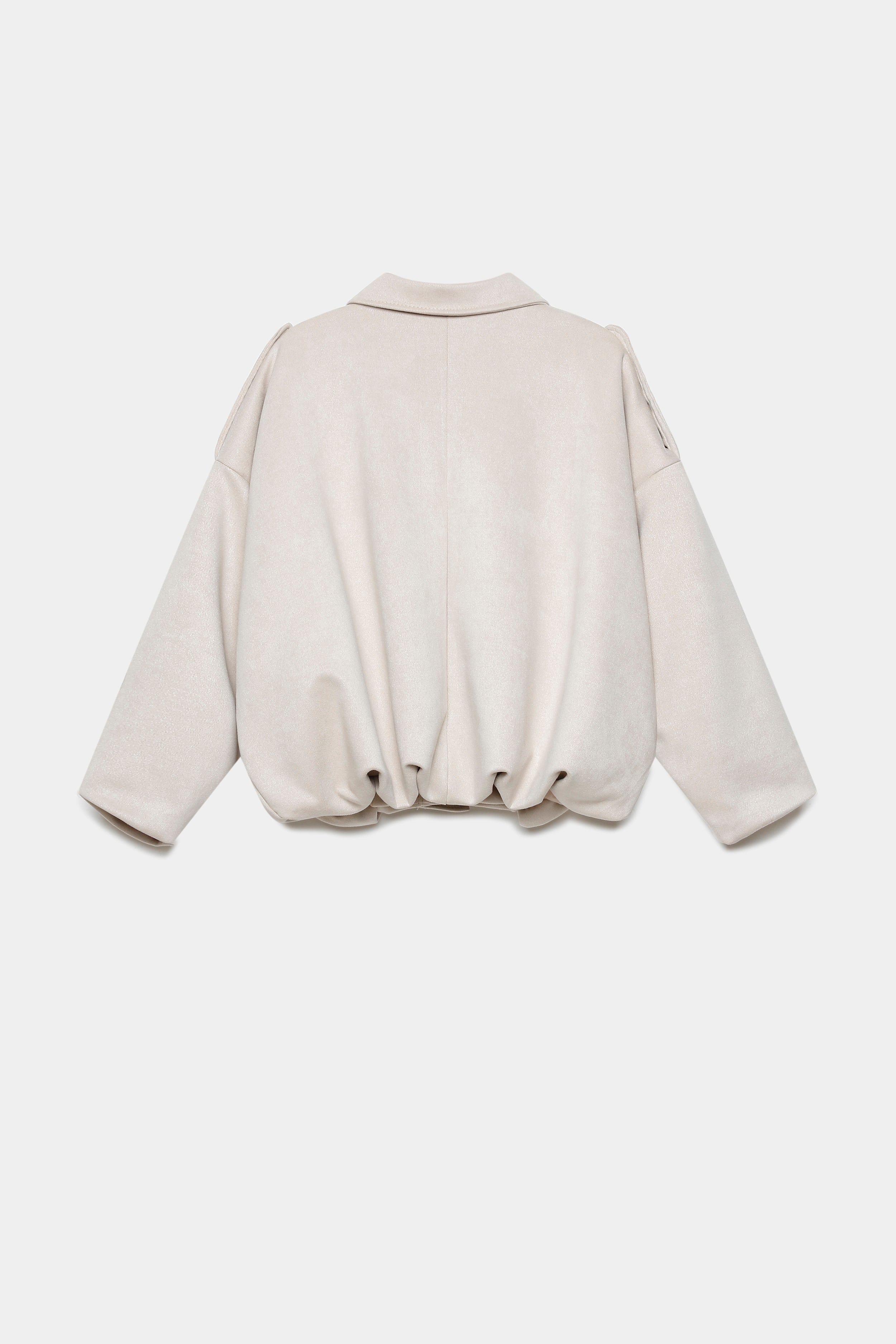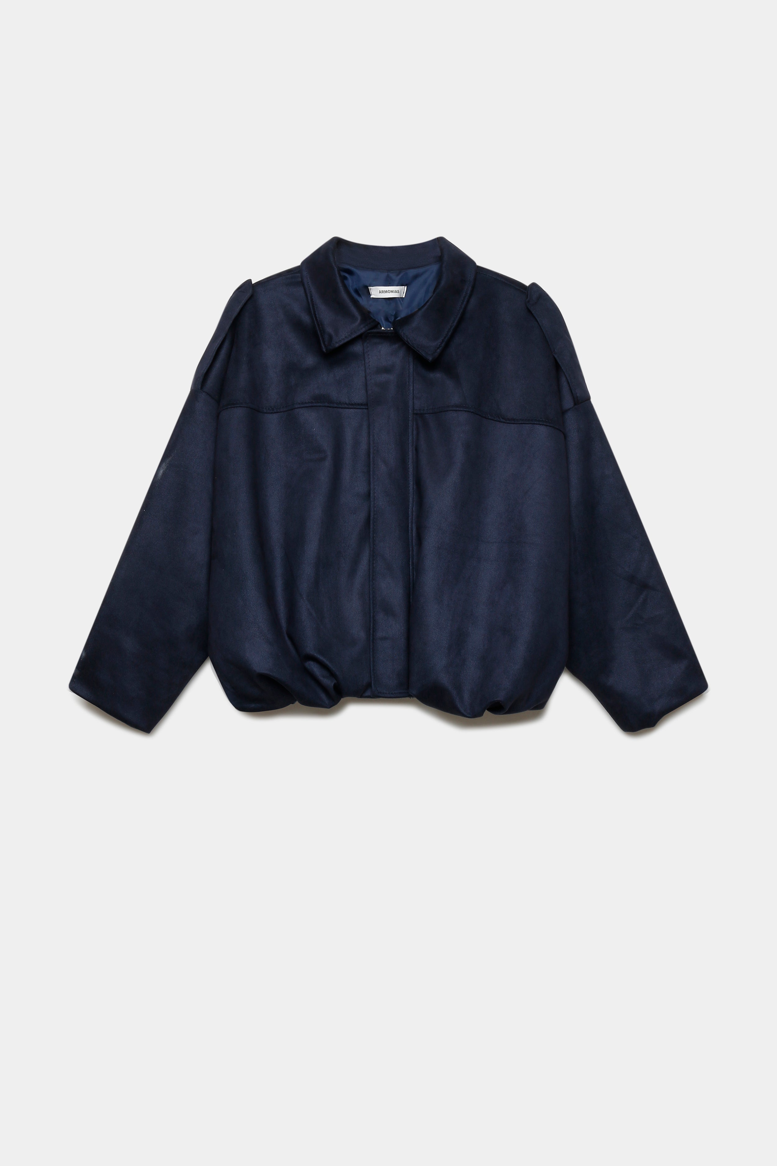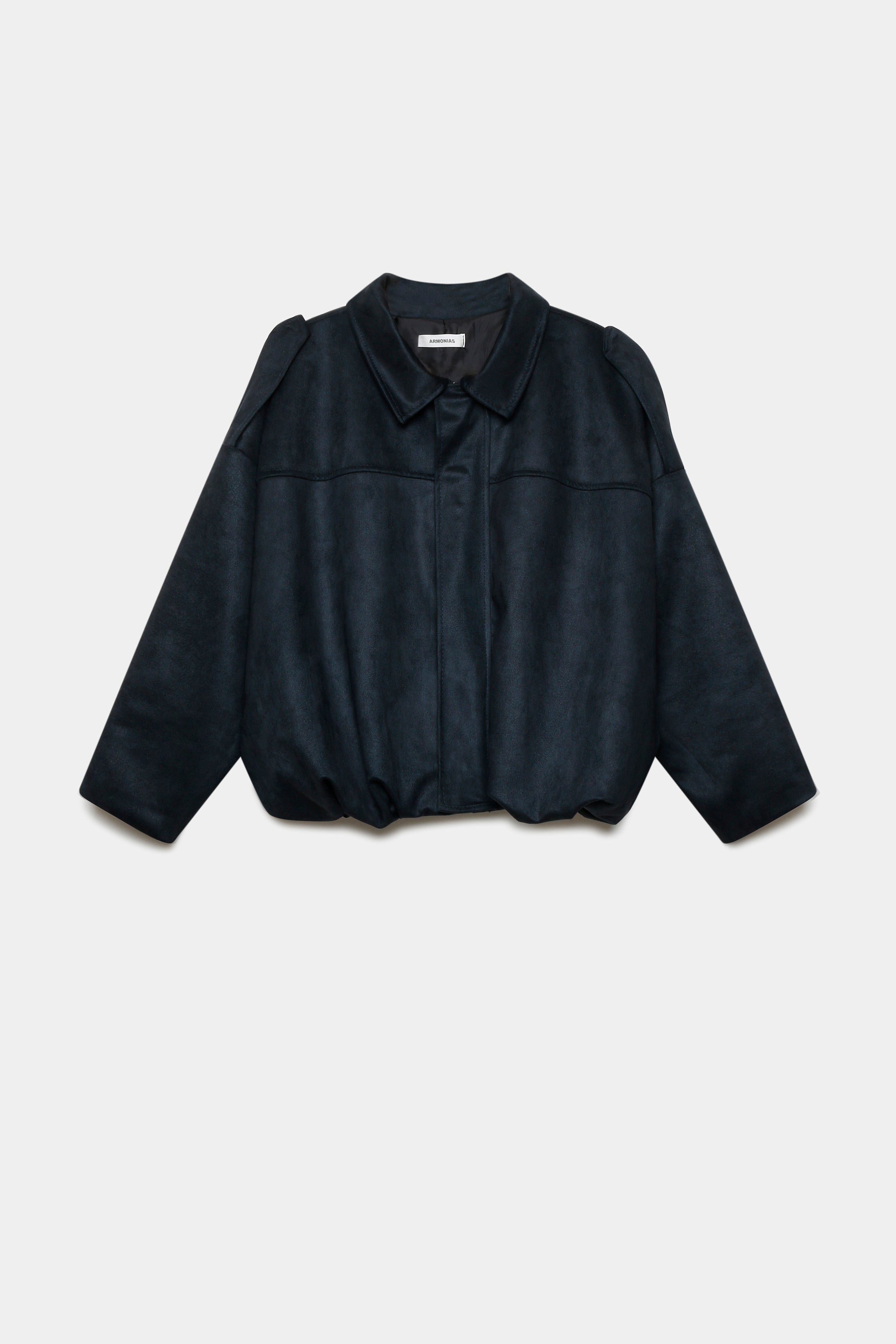 Tejido efecto ante. Cuello solapa. Manga larga. Cierre cremallera.