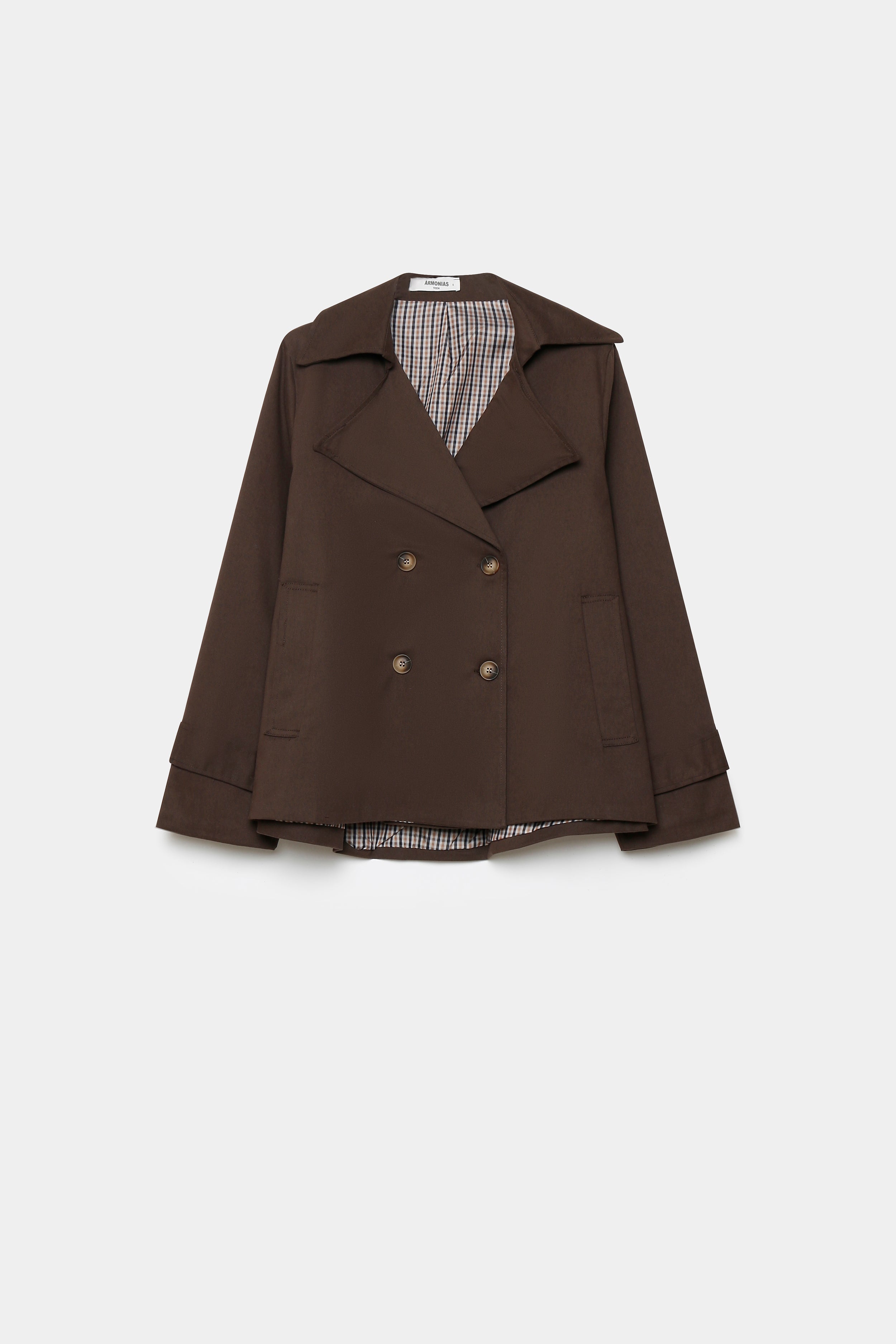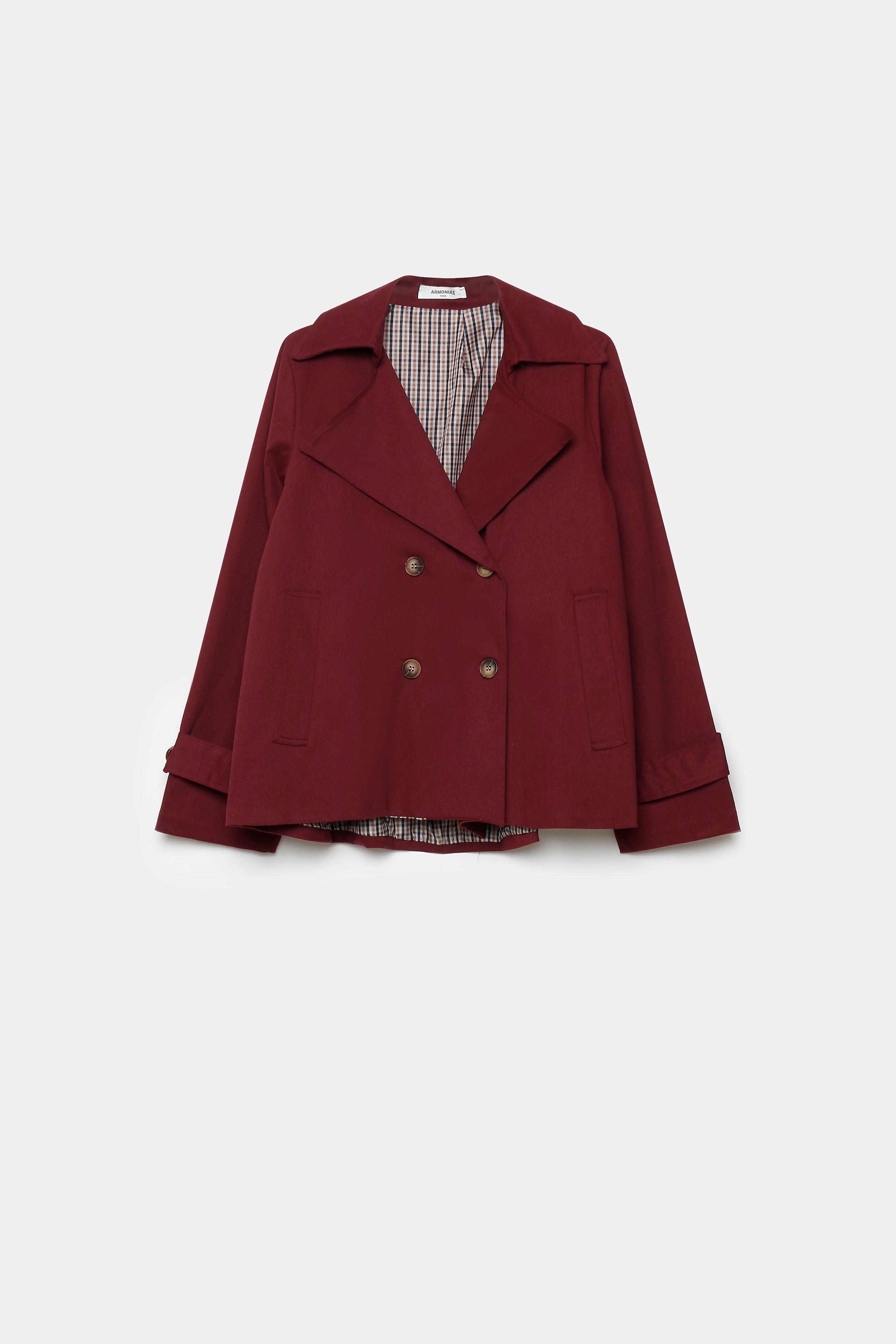 Tejido de algodón. Escote pico y solapa. Manga larga. Bolsillos laterales. Cierre de botones. Forro estampado de cuadros.