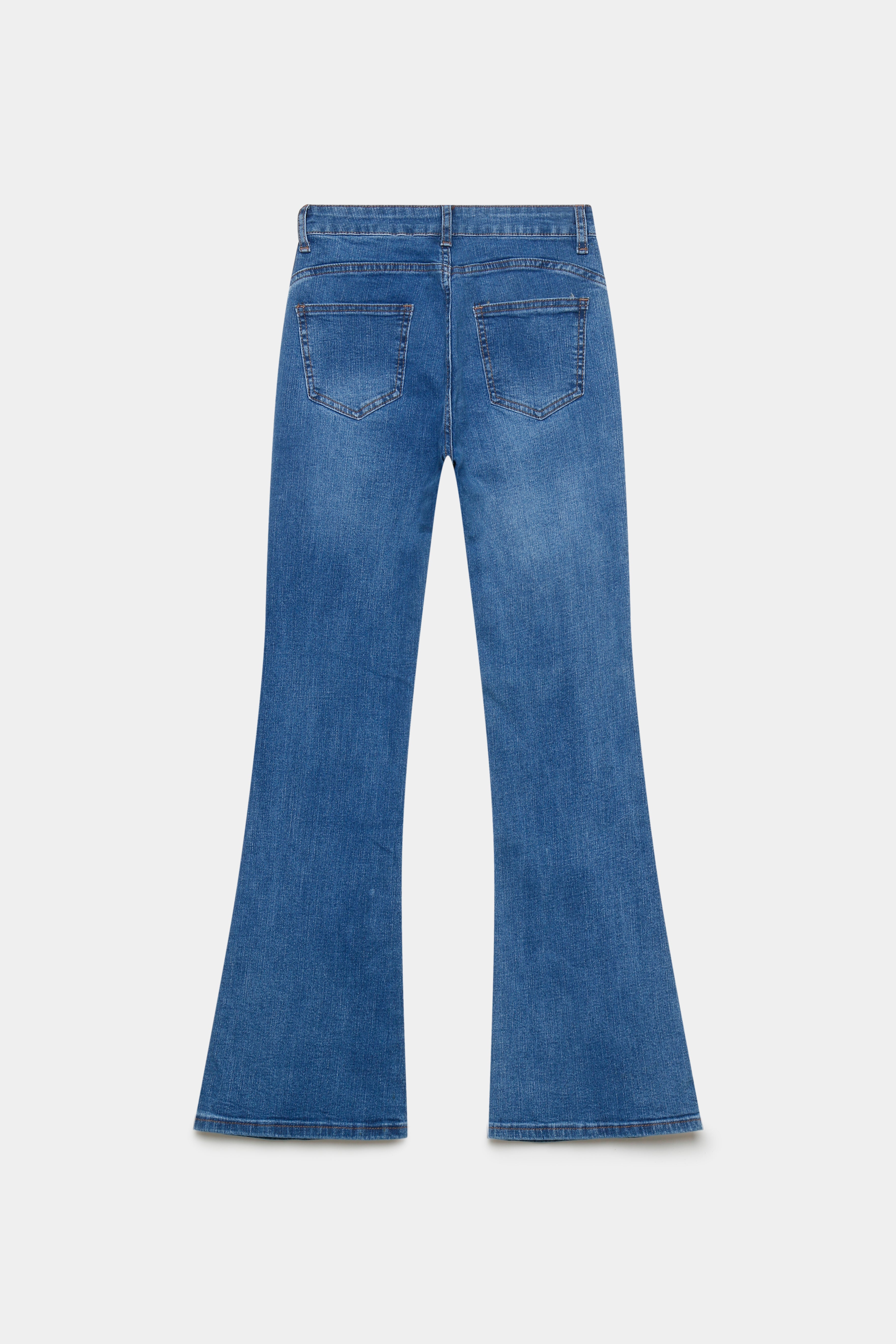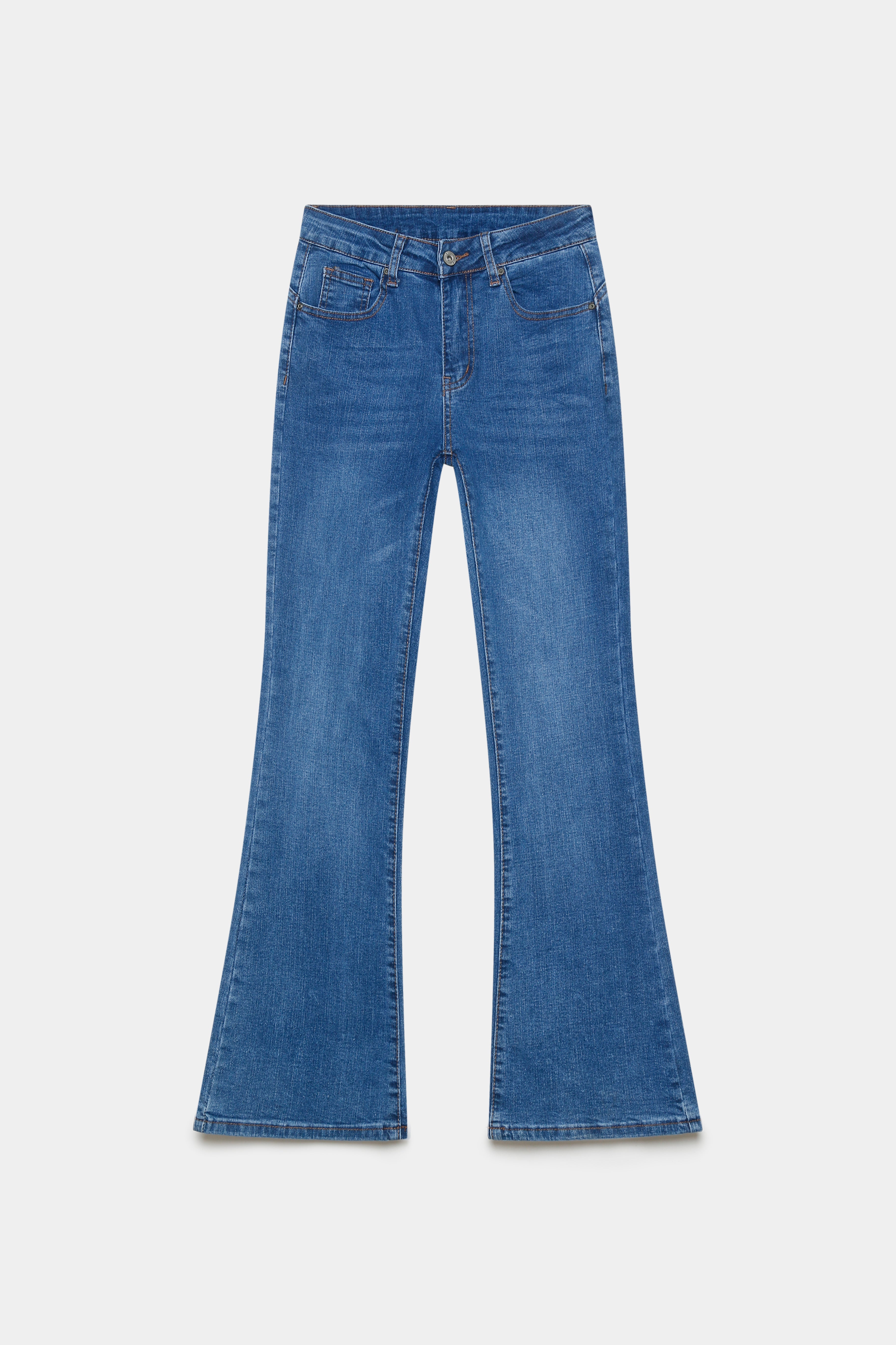 Tejido mezcla de algodón. Tiro medio. Cinco bolsillos. Diseño flare. Diseño corto. Push up.