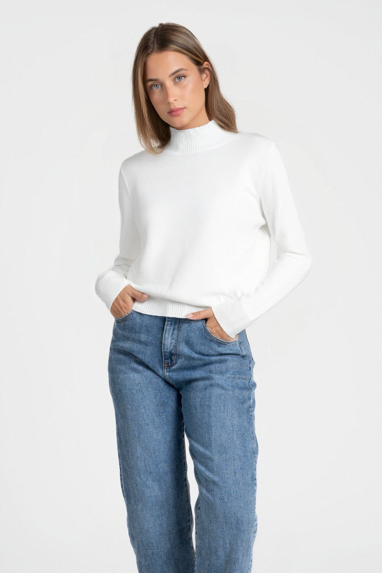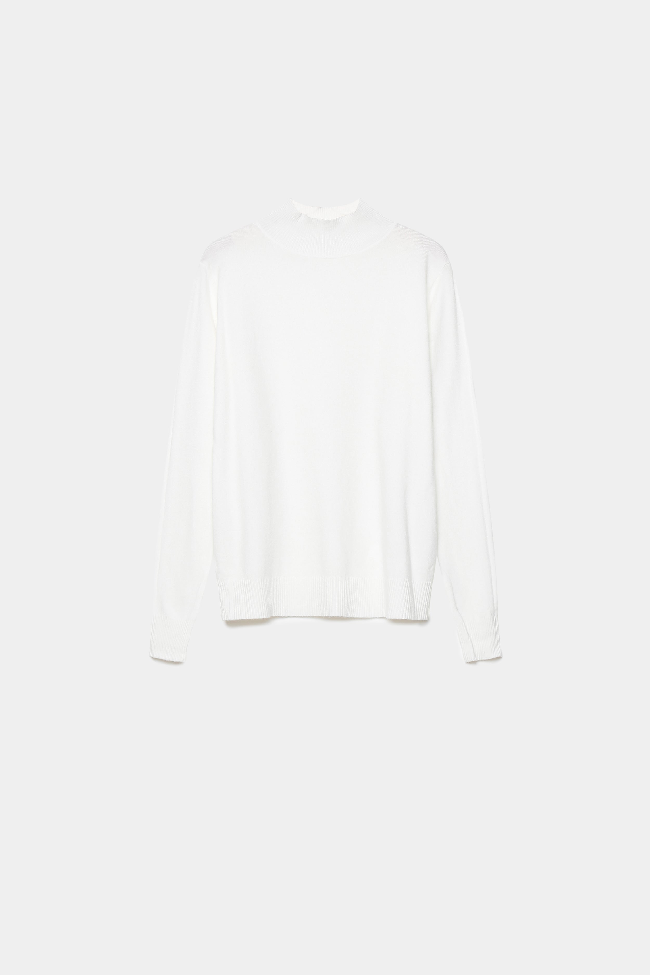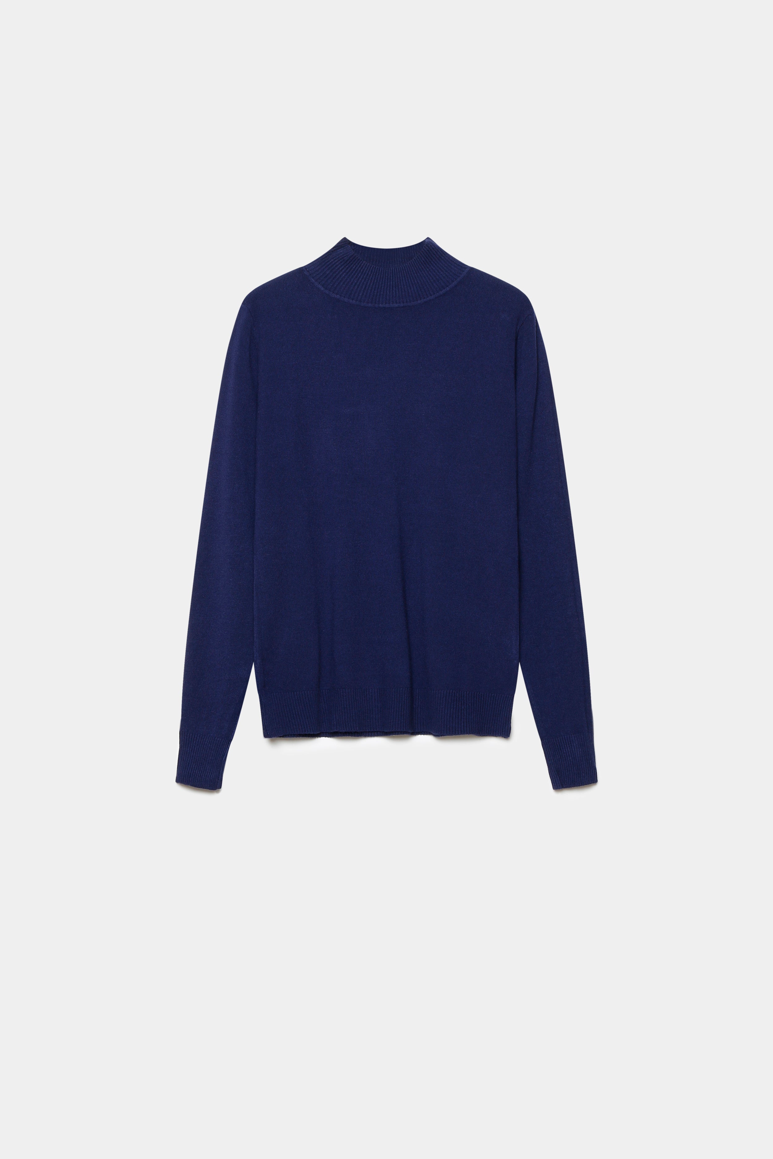 Tejido de punto. Diseño recto. Diseño básico. Cuello perkins. Manga larga. Terminaciones en canalé.