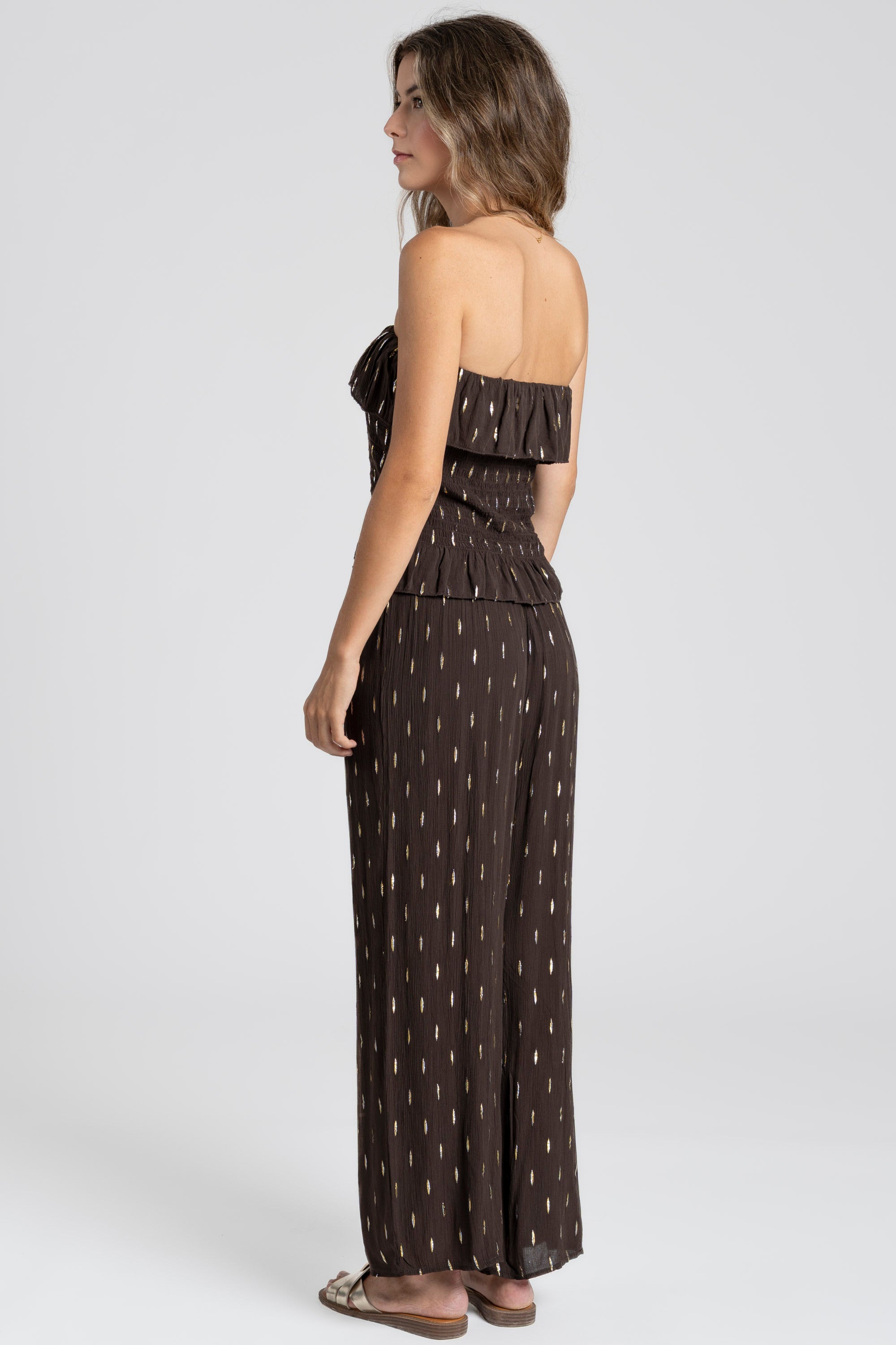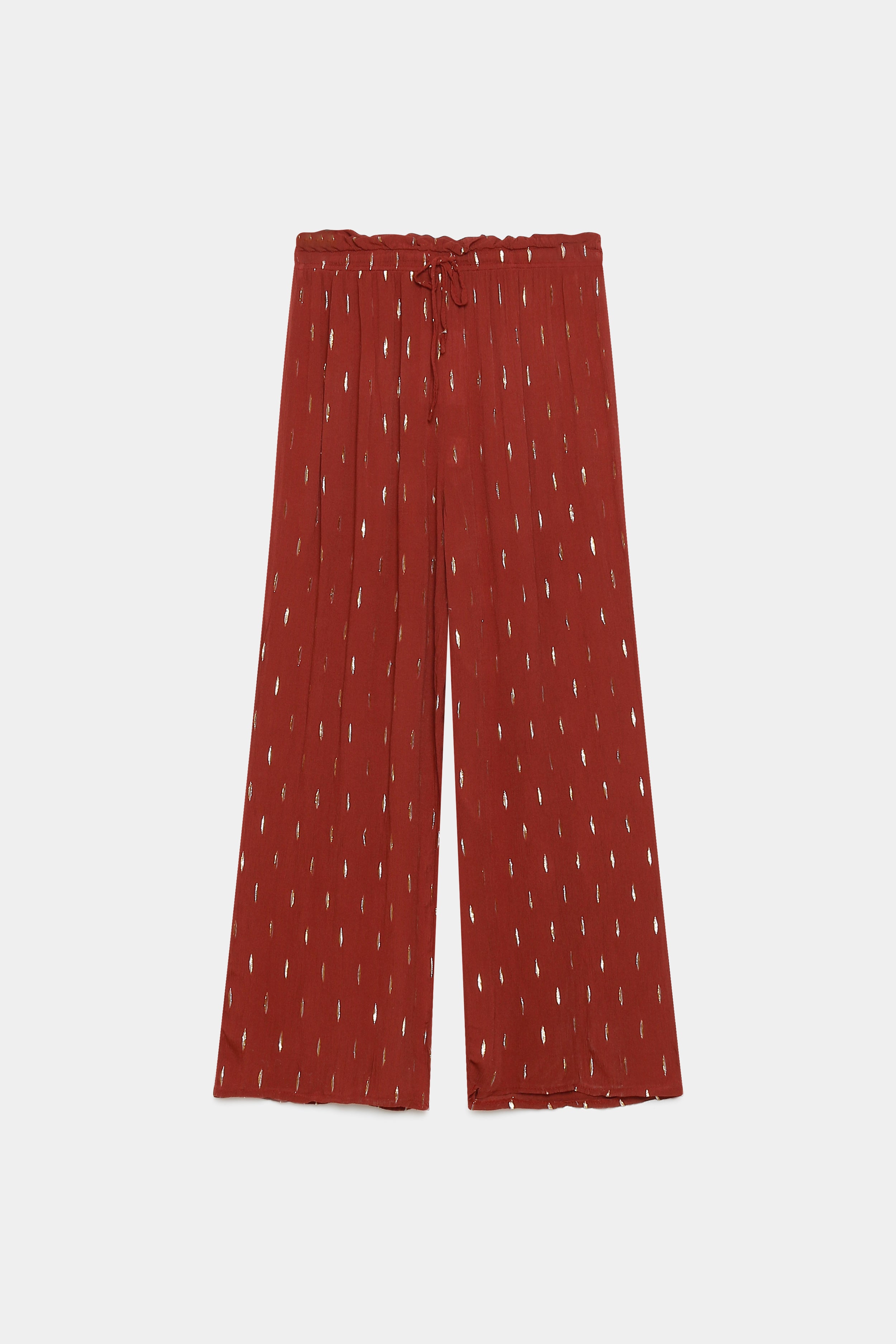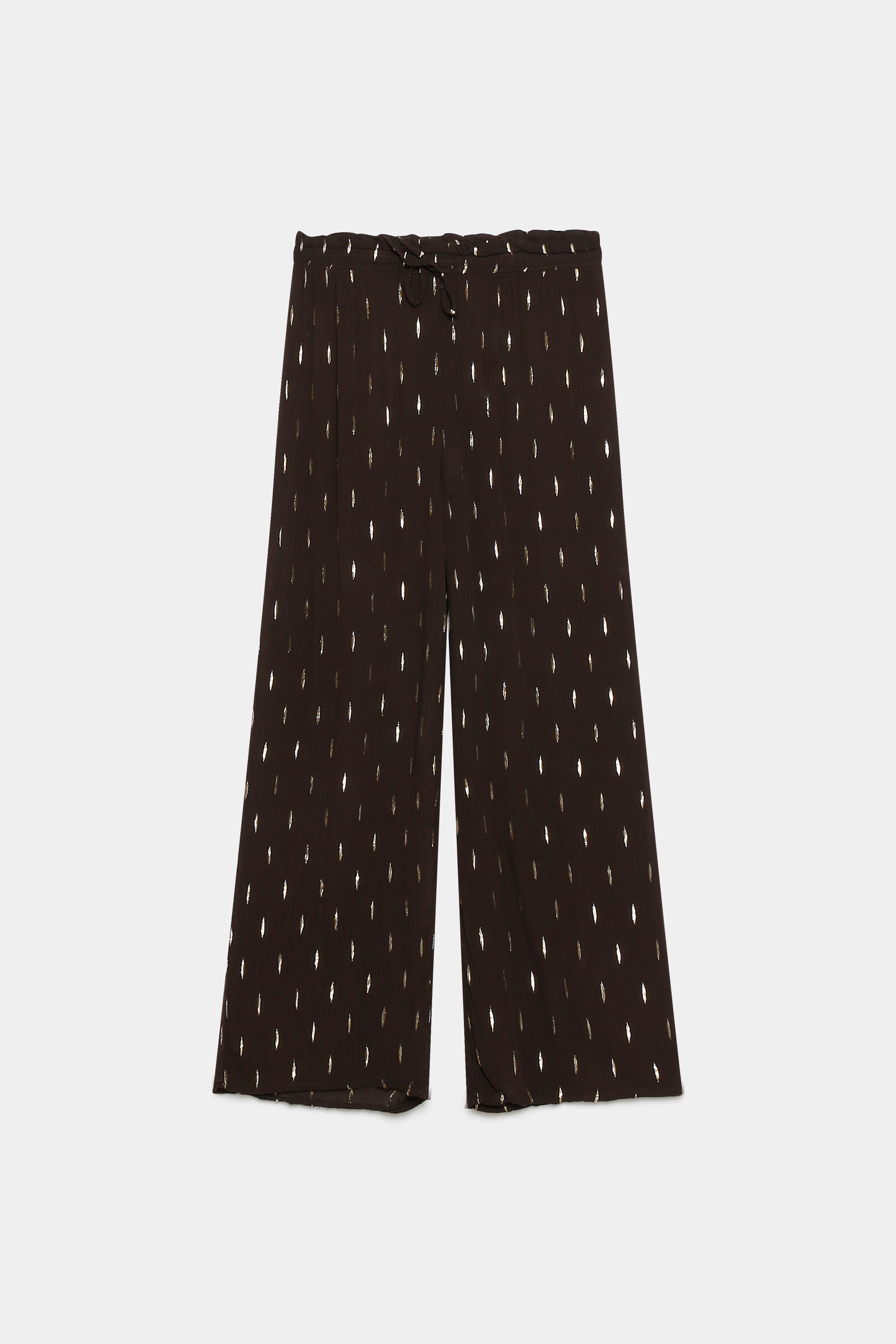 Tejido fluido. Cintura media. Cintura elástica y ajustable. Pernera recta.