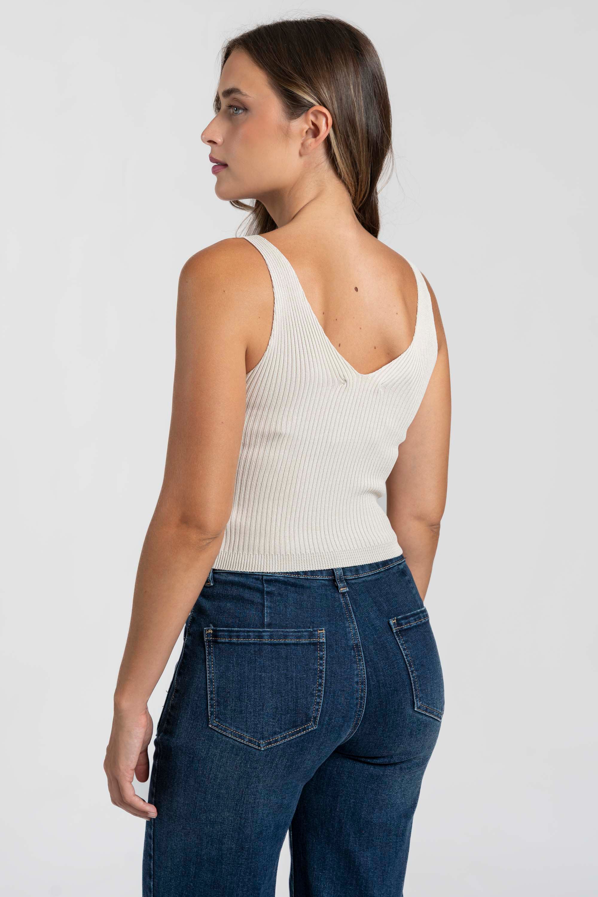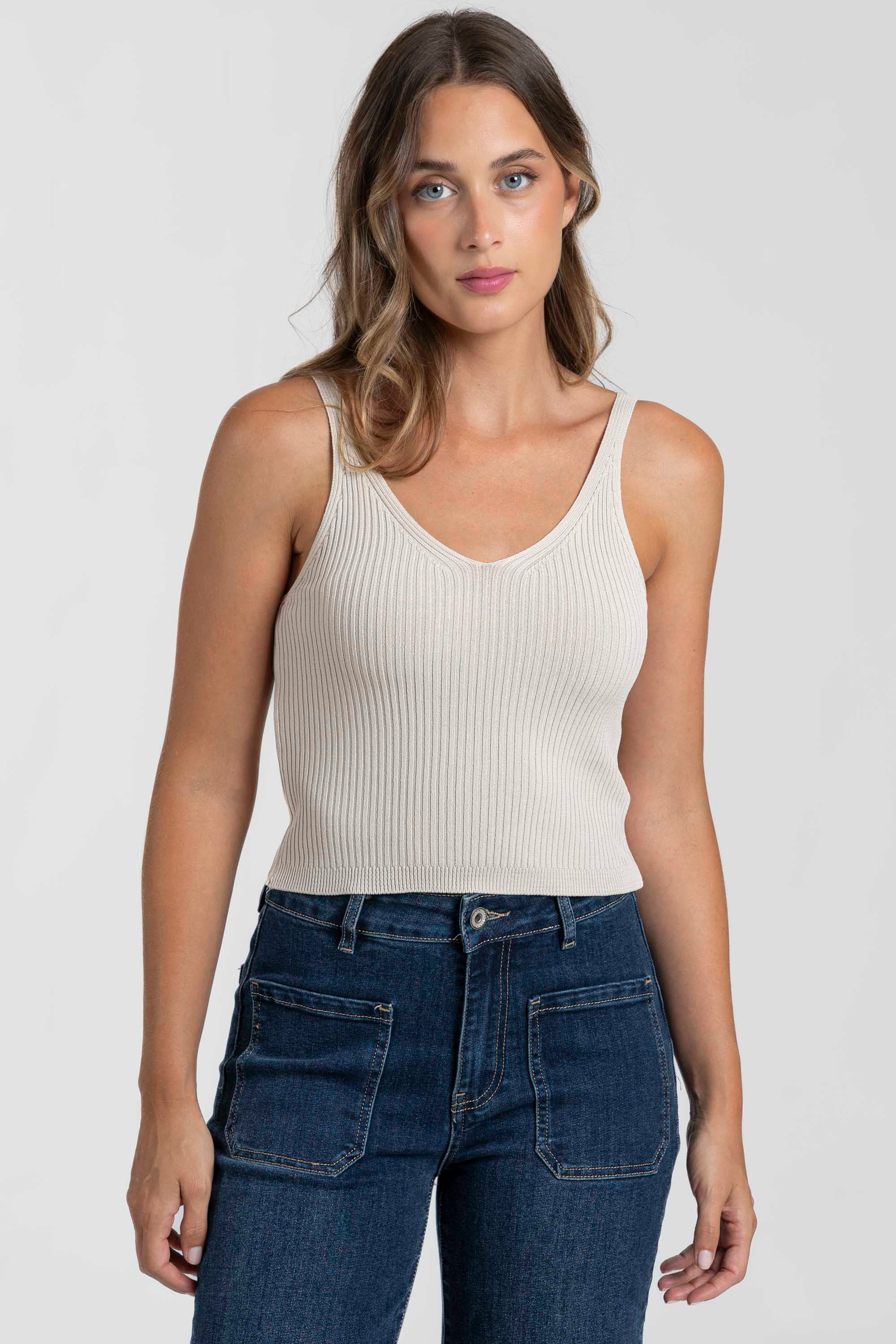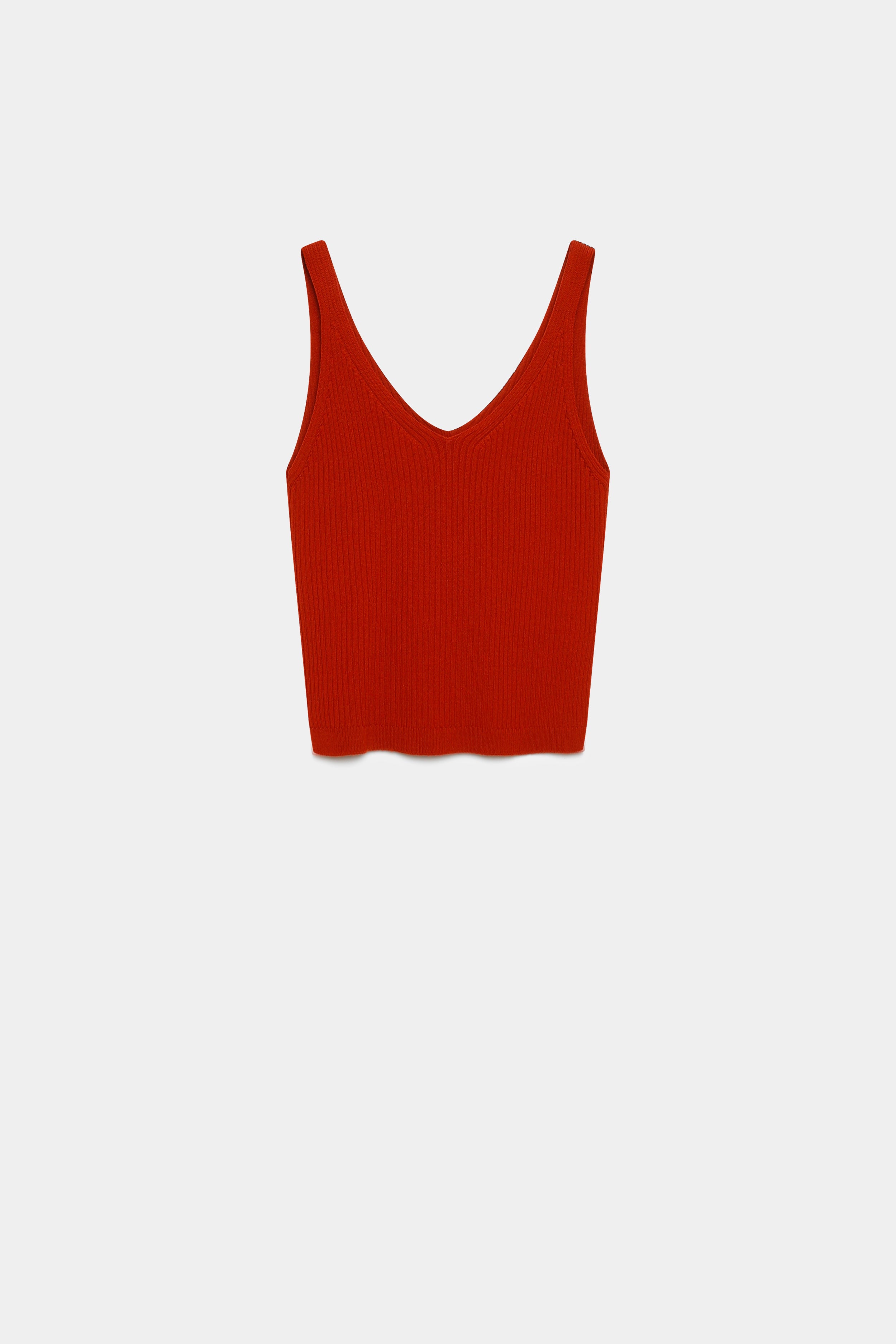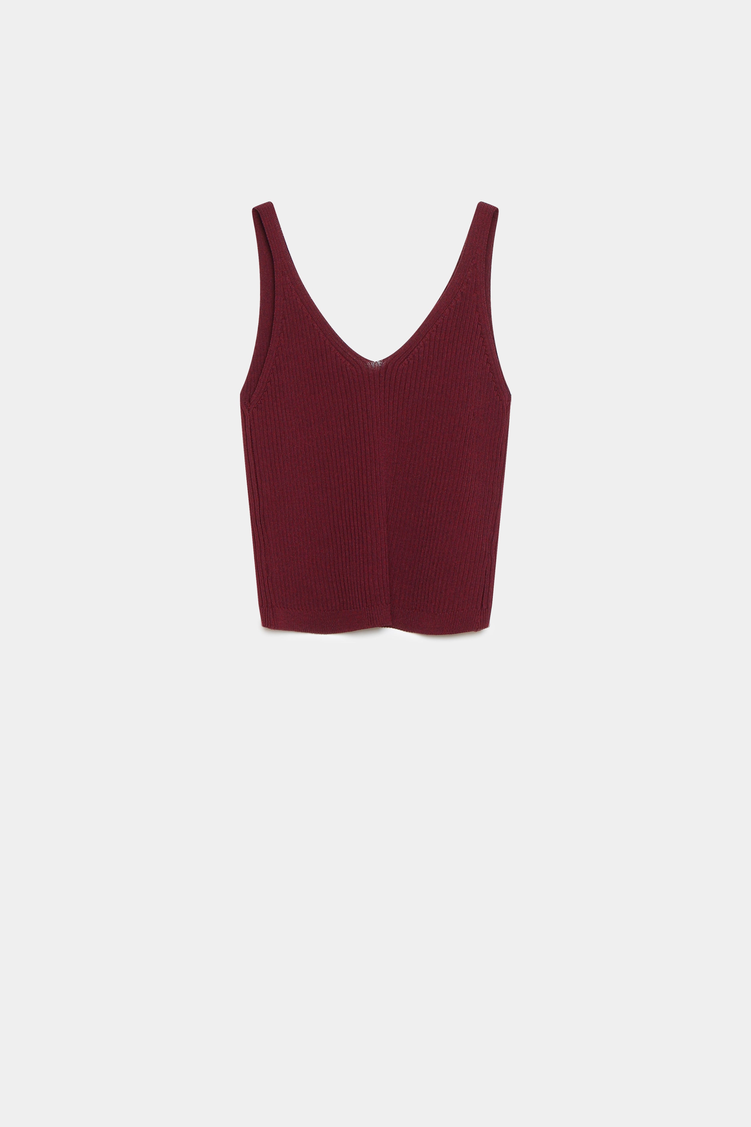 Tejido punto. Tirantes. Escote pico. Talla modelo: XS. Altura modelo 1,66 m.