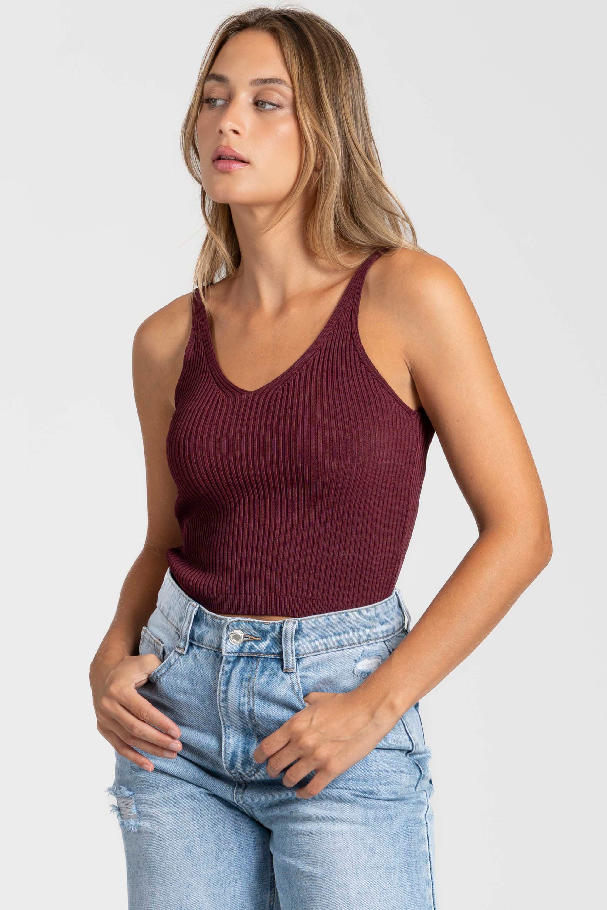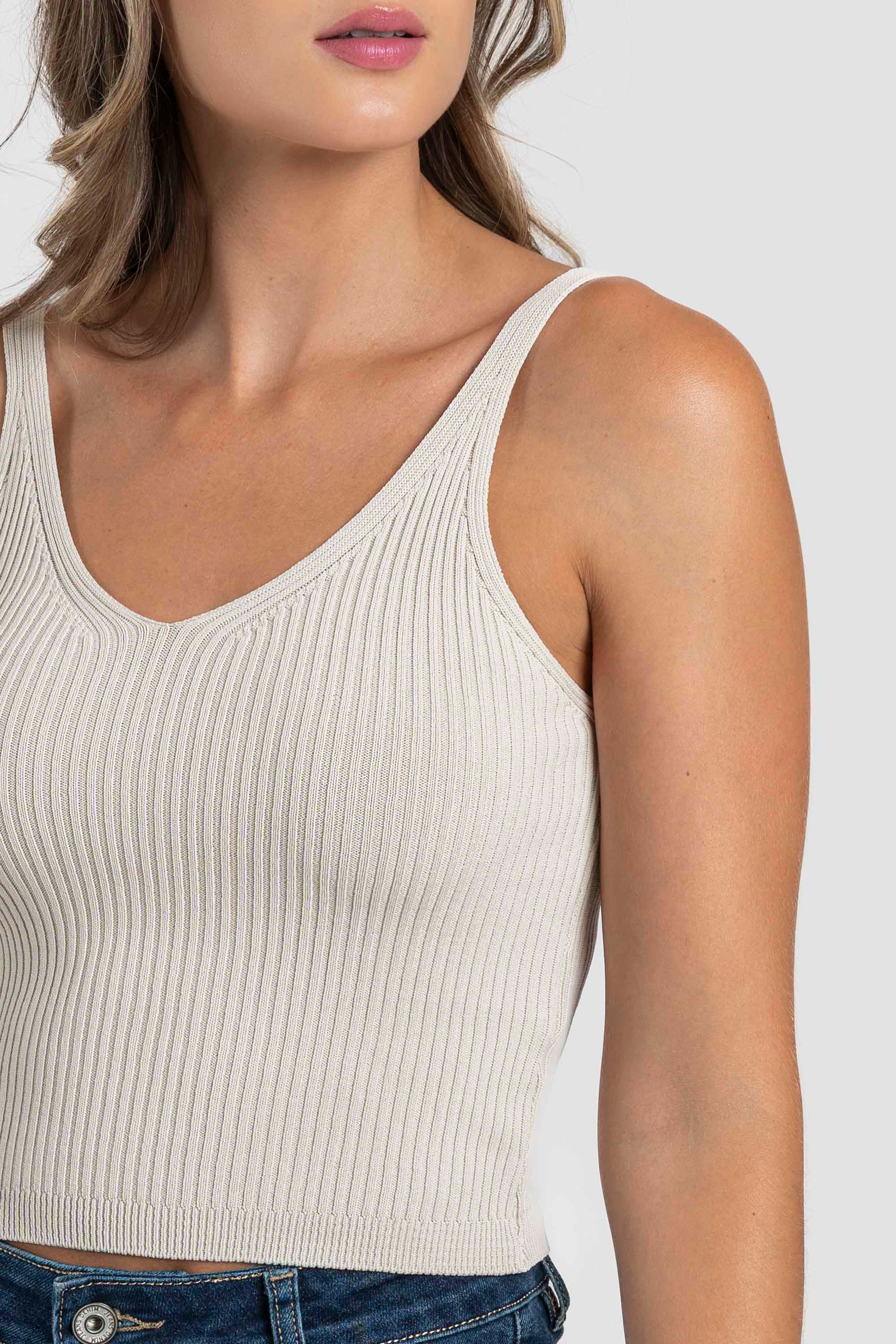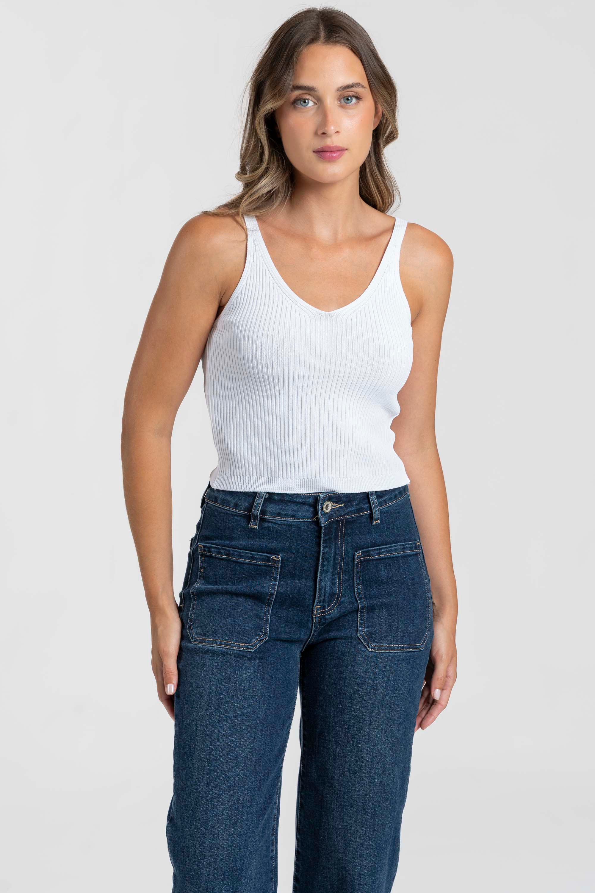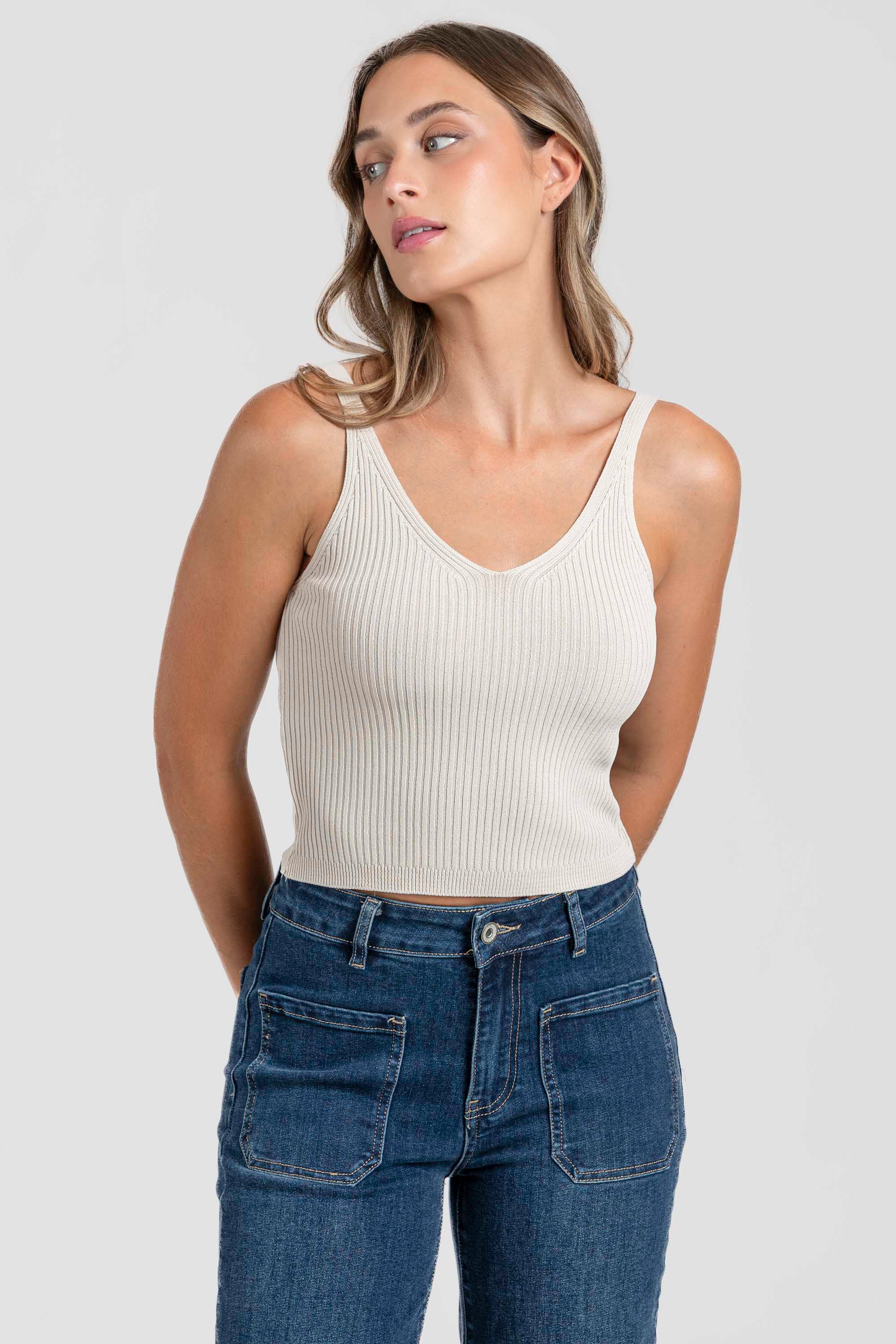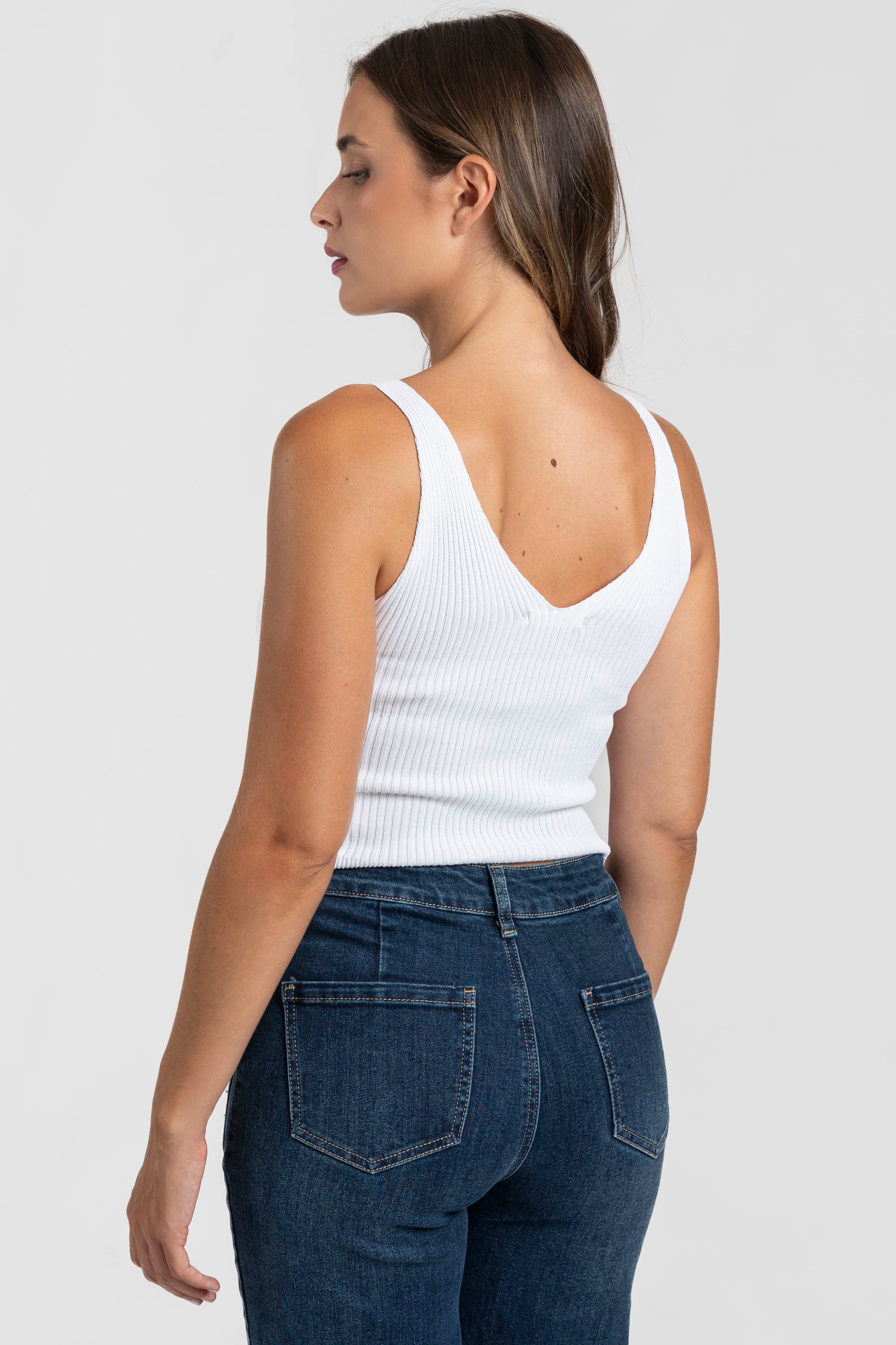 Tejido punto. Tirantes. Escote pico. Talla modelo: XS. Altura modelo 1,66 m.