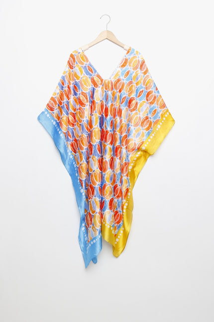 Kimono fluido estampado. Cuello pico. Manga corta. Talla única.