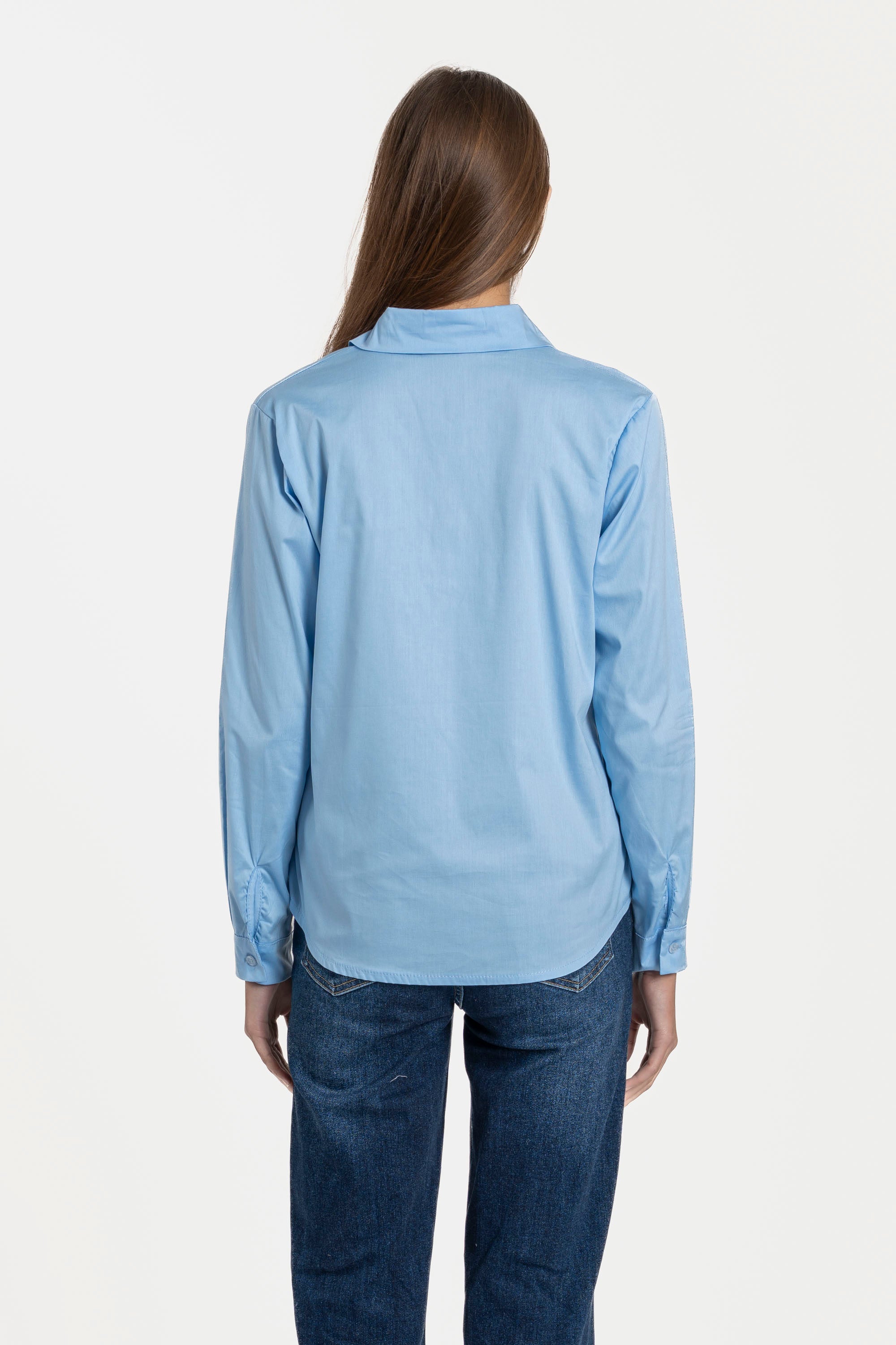 Tejido de algodón. Diseño básico. Diseño recto. Cuello solapa. Cuello pico. Manga larga. Puño abotonado. Cierre de botones. Bajo redondeado. Talla modelo: S. Altura modelo: 1.66 m.