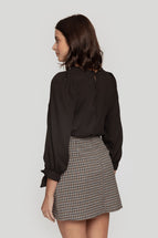 Diseño estampado. Diseño cruzado. Diseño mini. Tiro medio. Cierre de cremallera invisible trasero. Amplia abertura lateral. Talla modelo: S. Altura modelo 1,76 m.