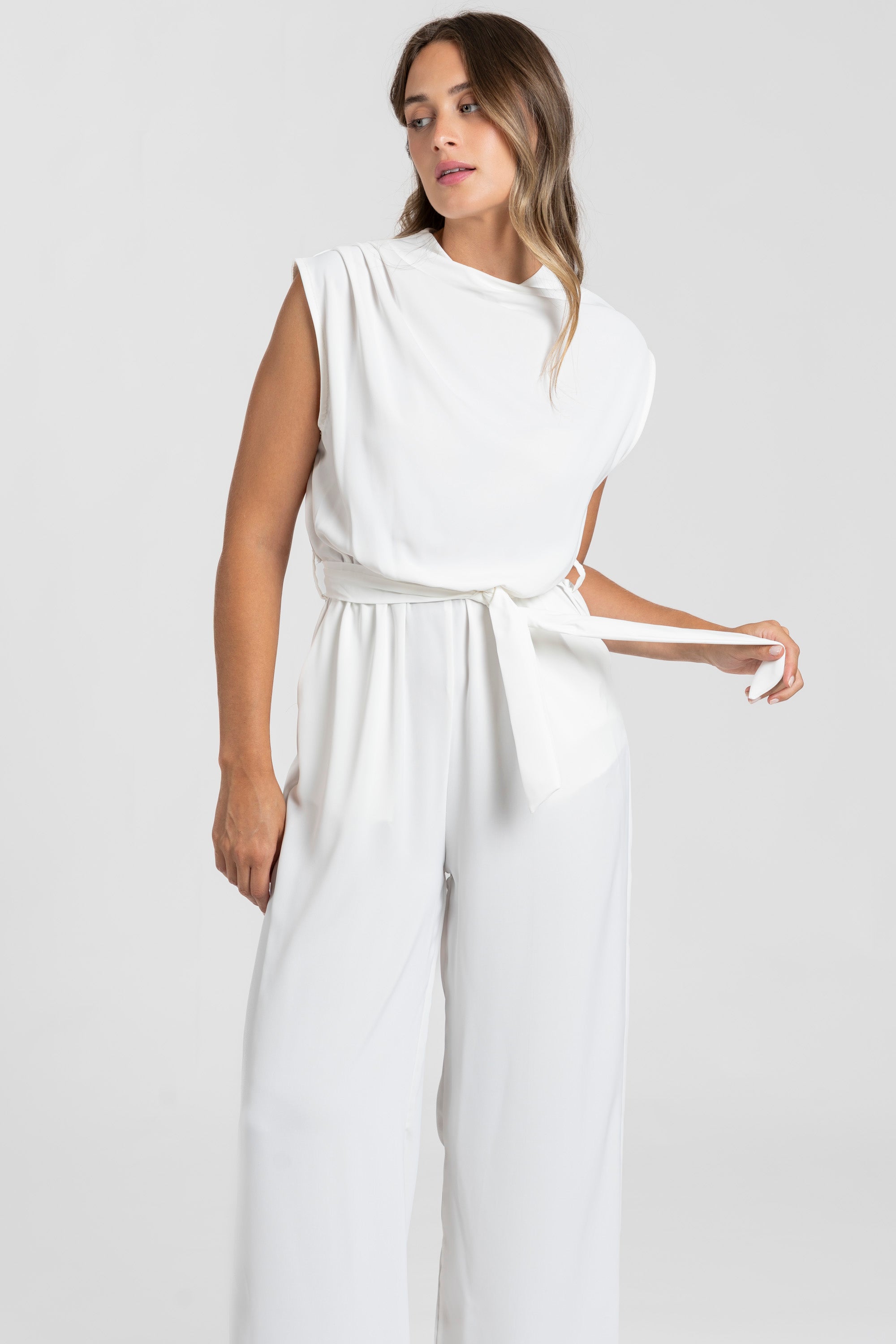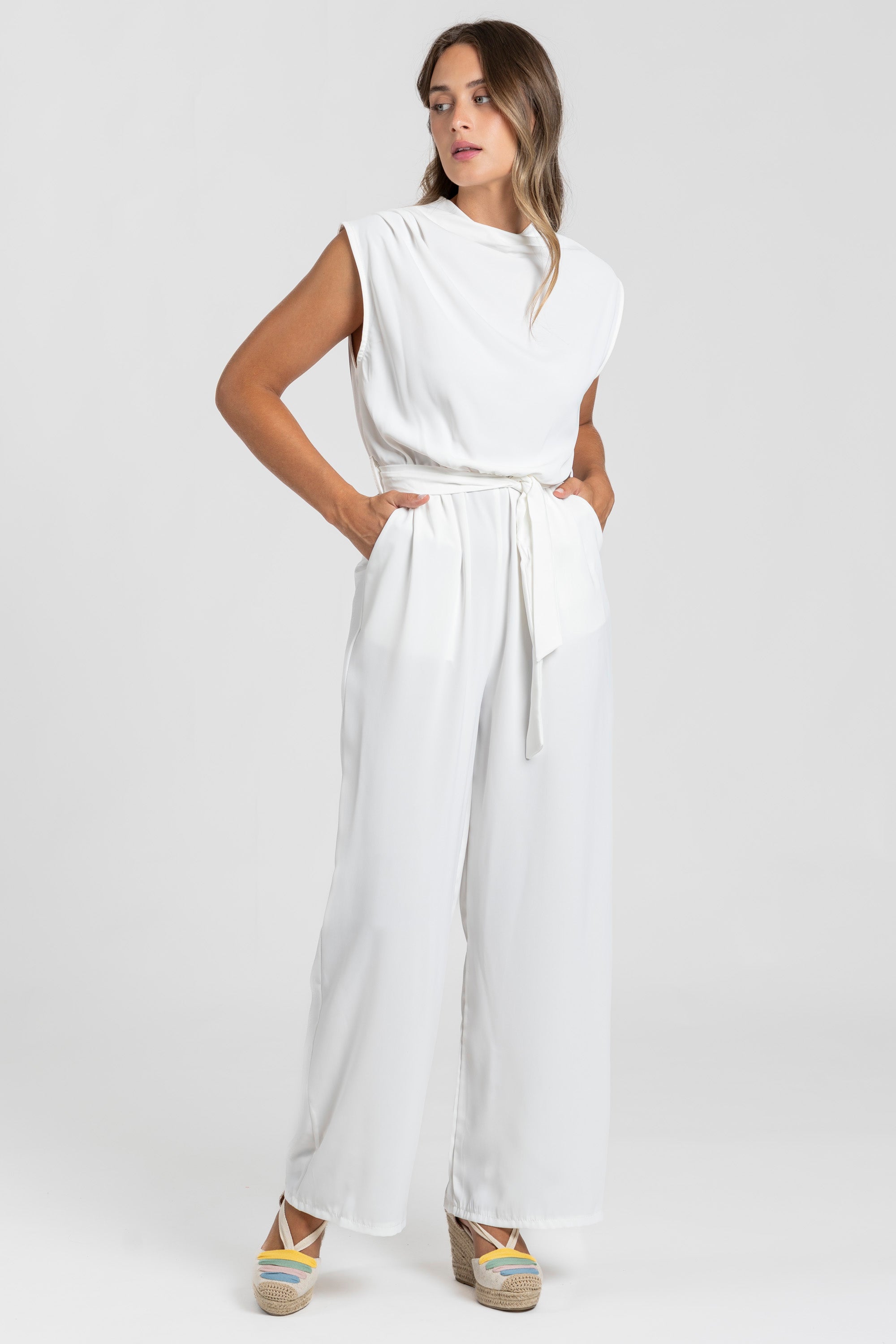 Tejido fluido. Diseño largo. Diseño recto. Escote redondo. Manga sisa. Elástico y abotonado en trasero. Cinturón combinado de mismo tejido.