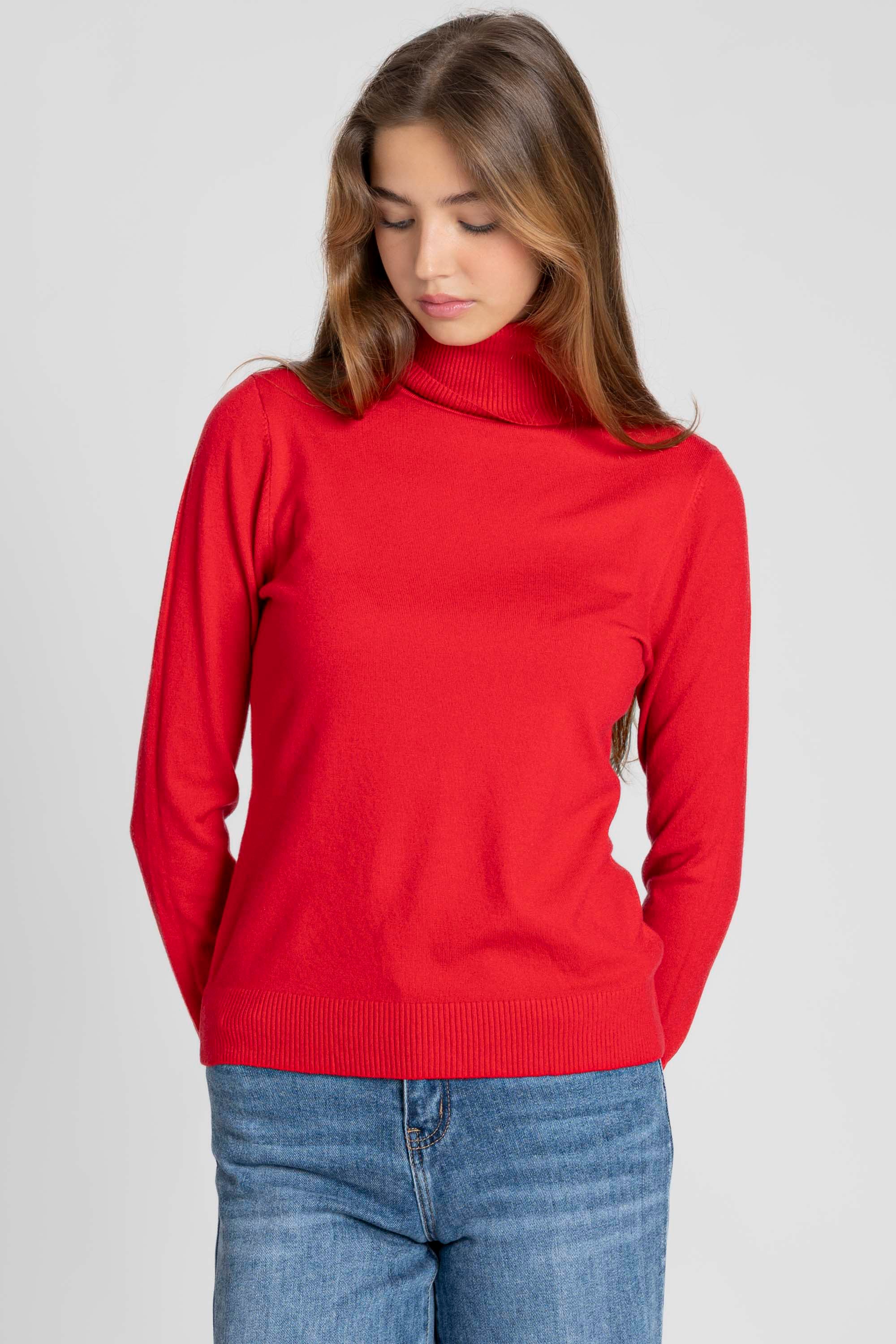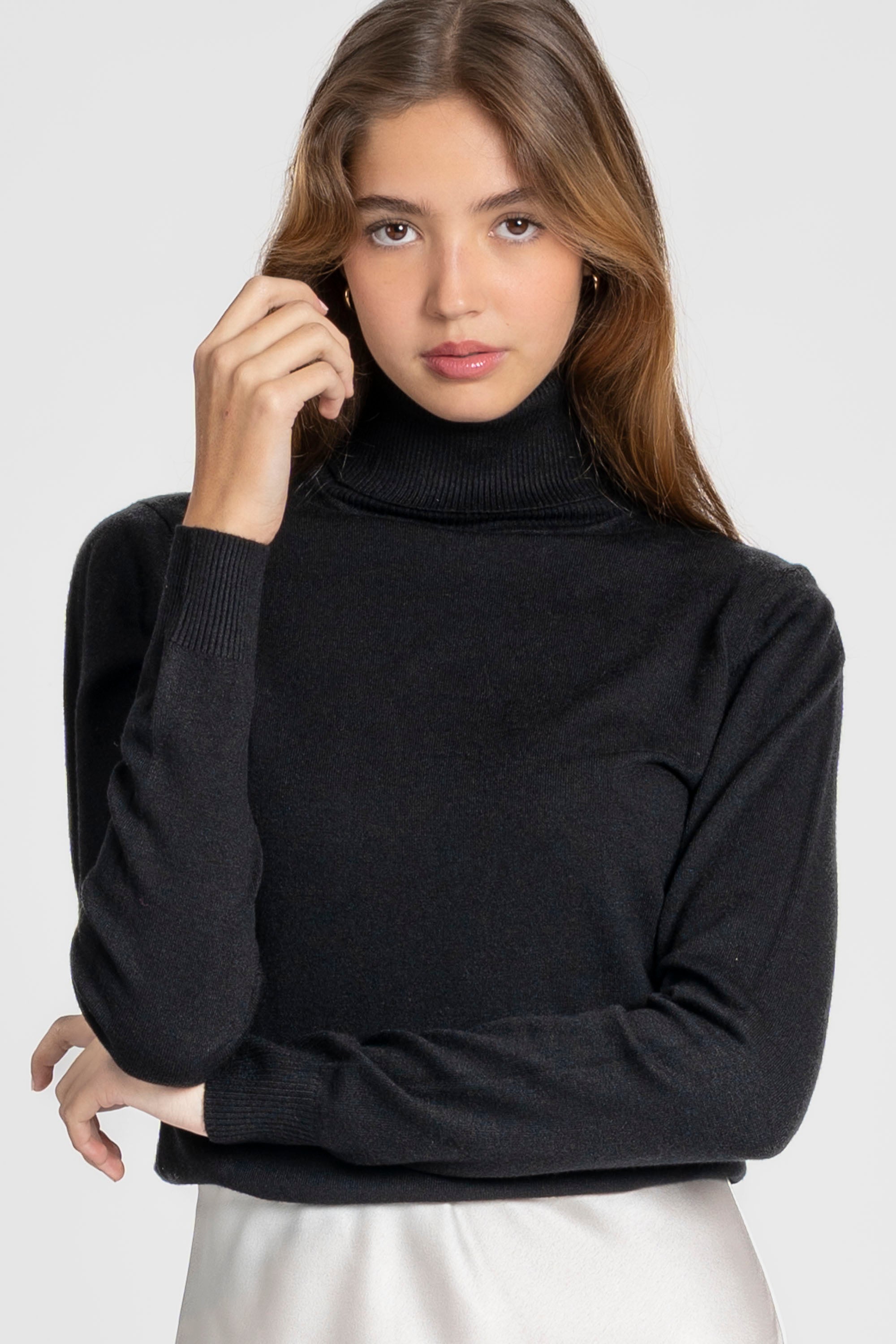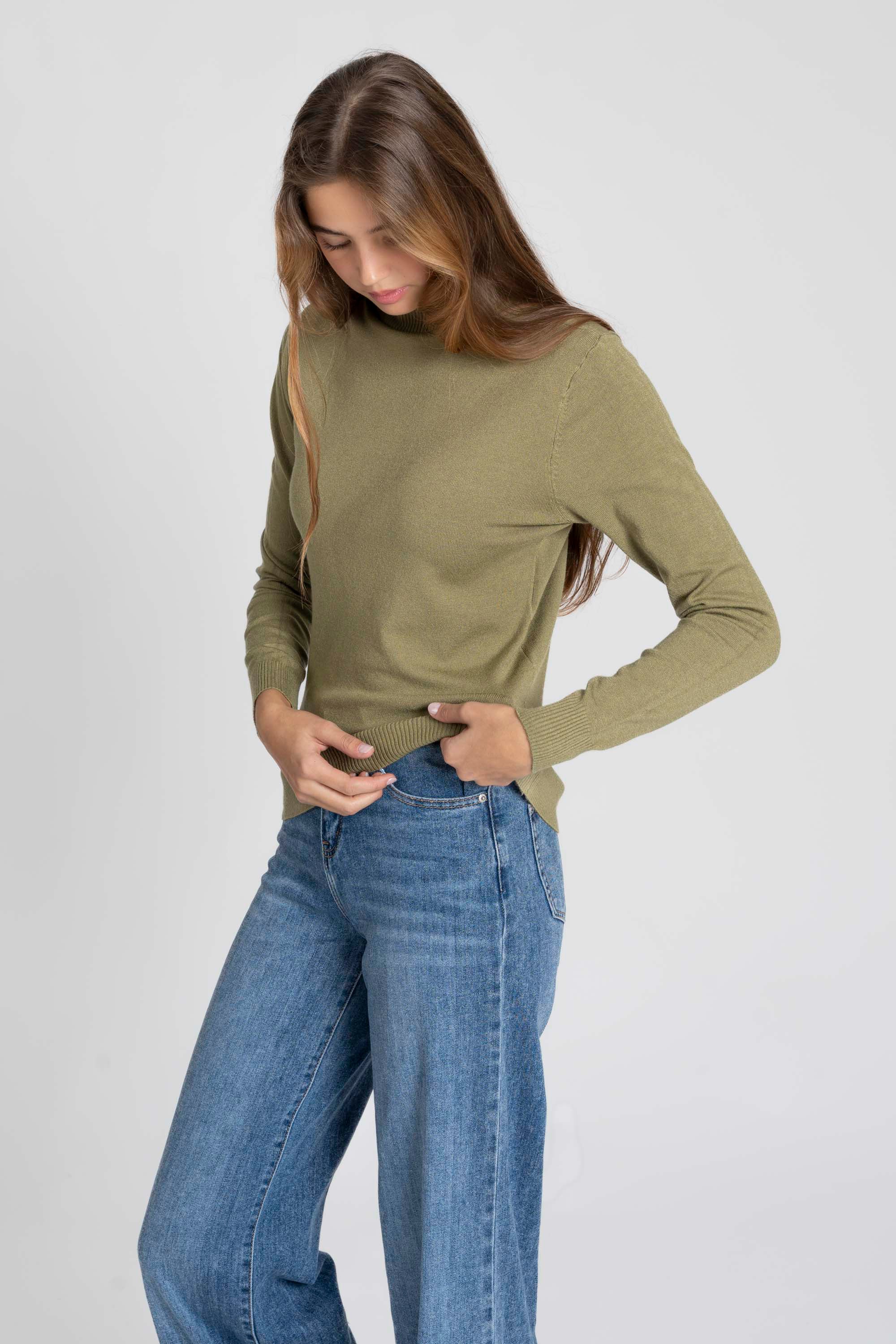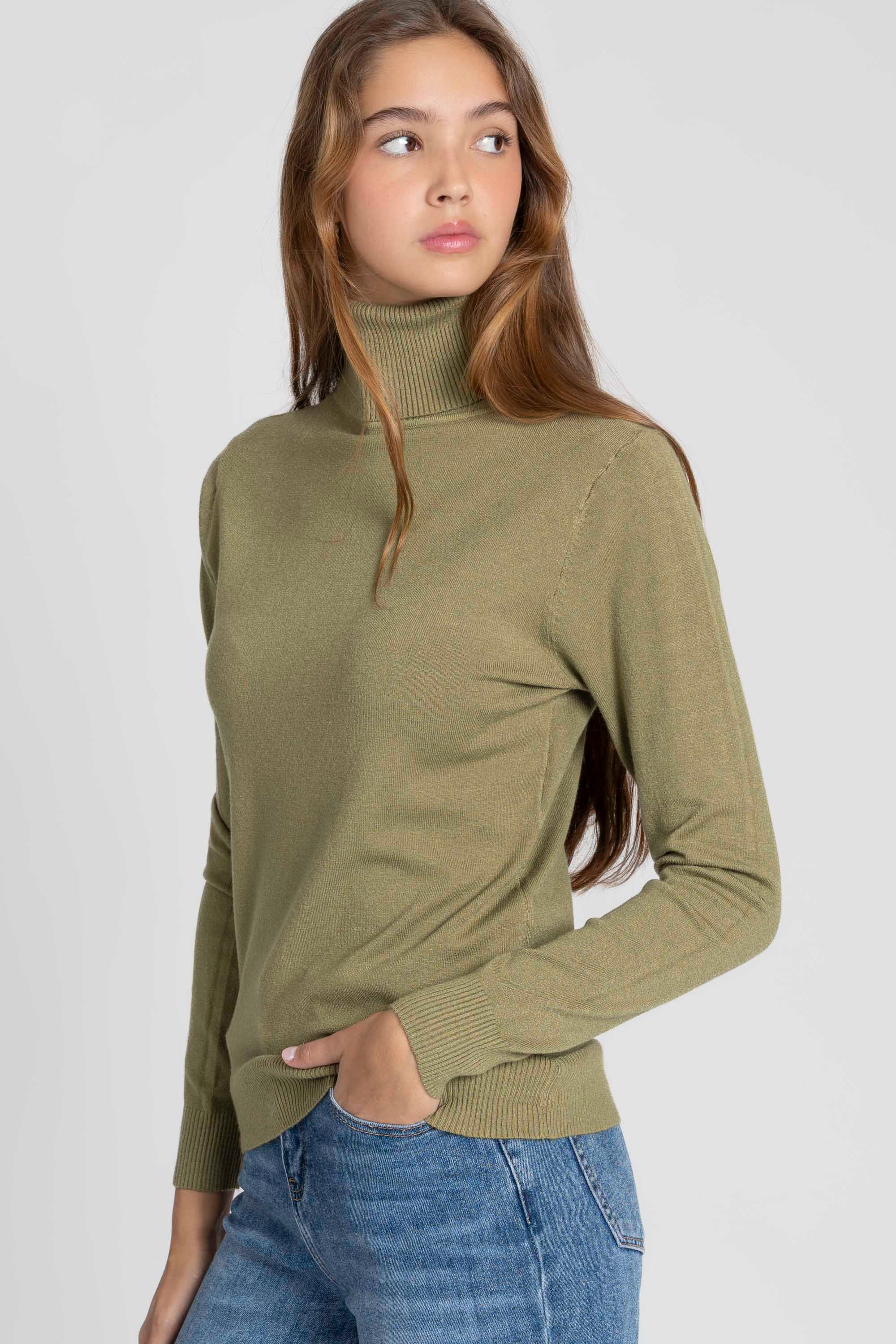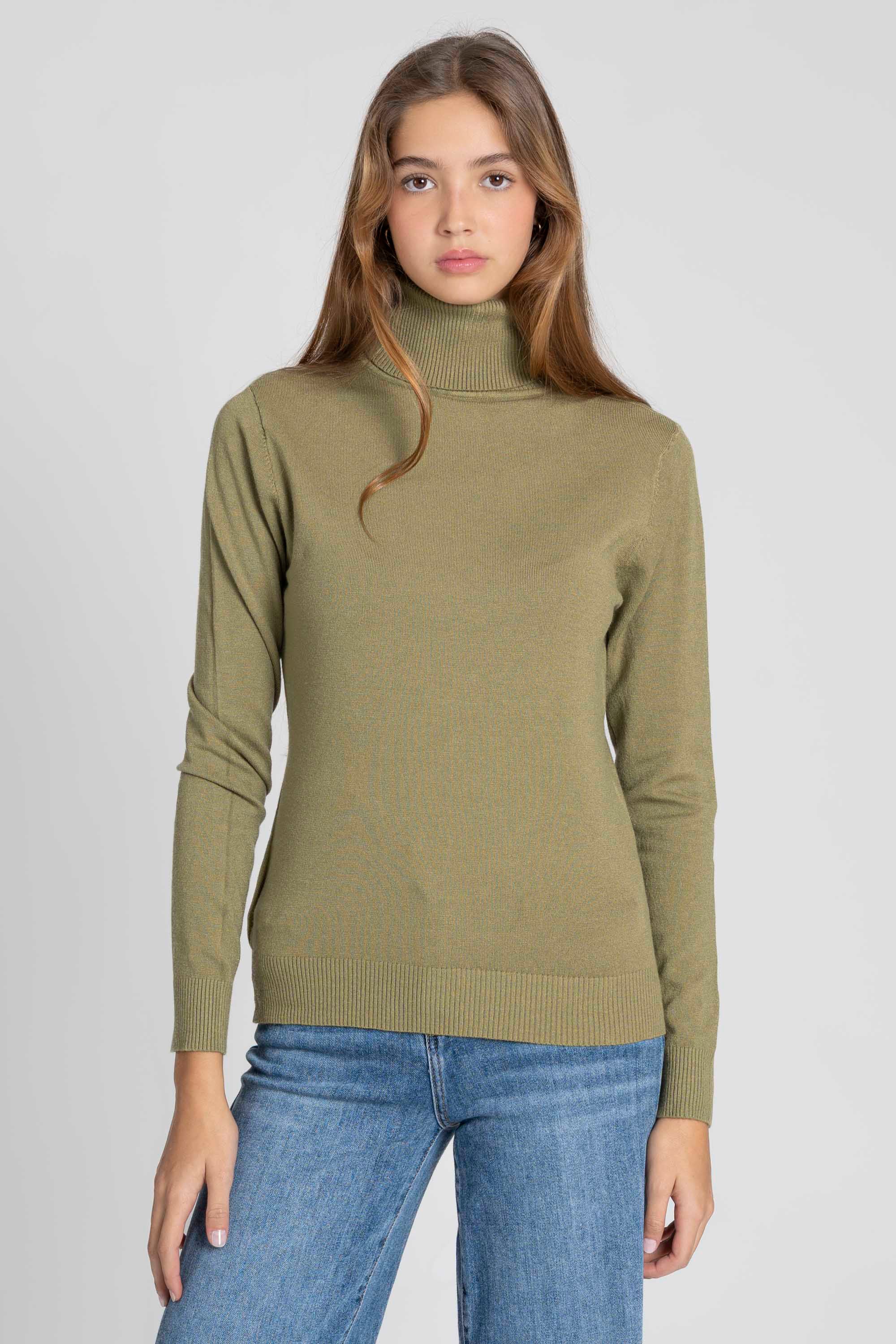 Tejido de punto. Diseño recto. Diseño básico. Cuello vuelto. Manga larga. Terminaciones en canalé.