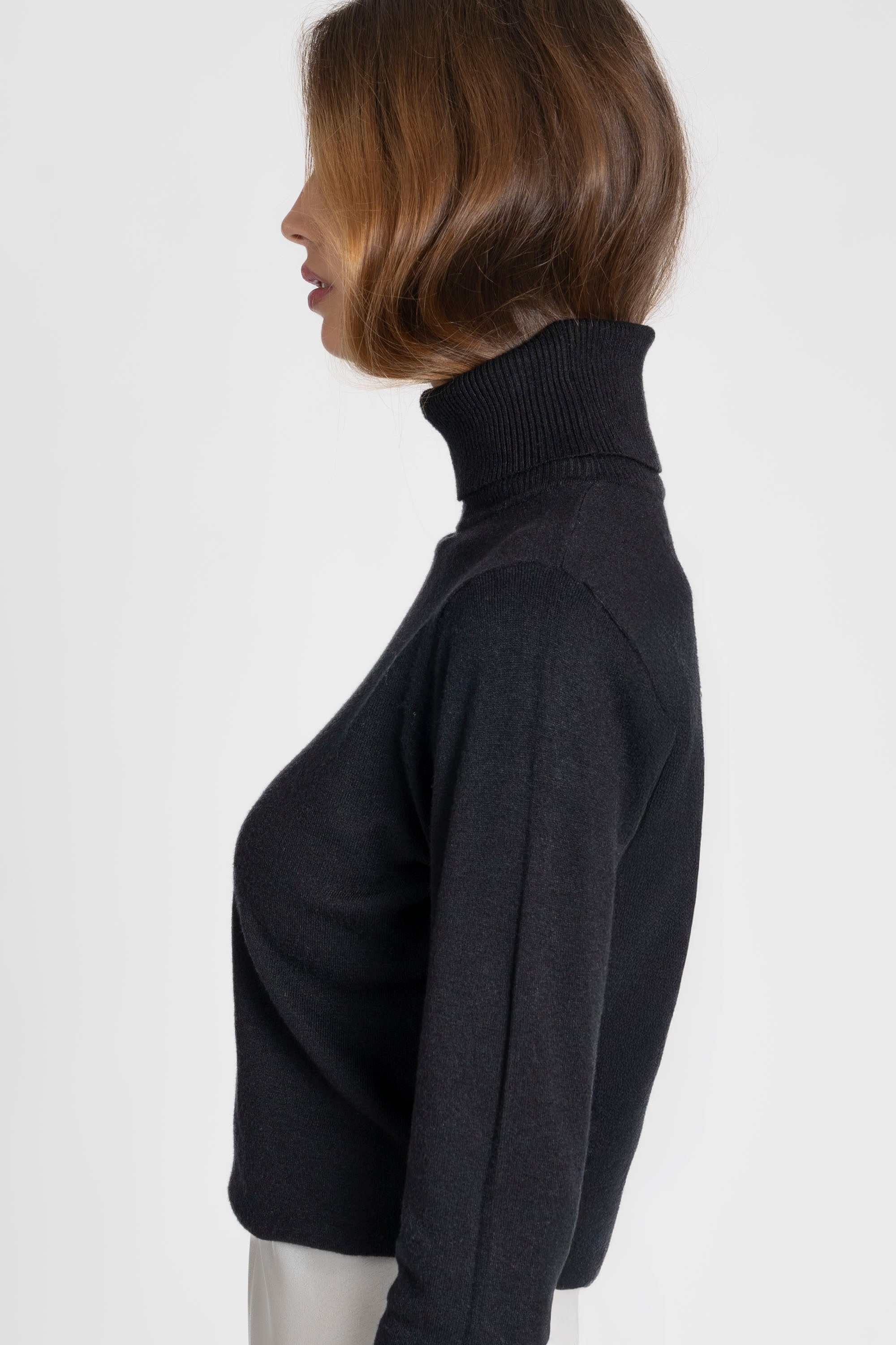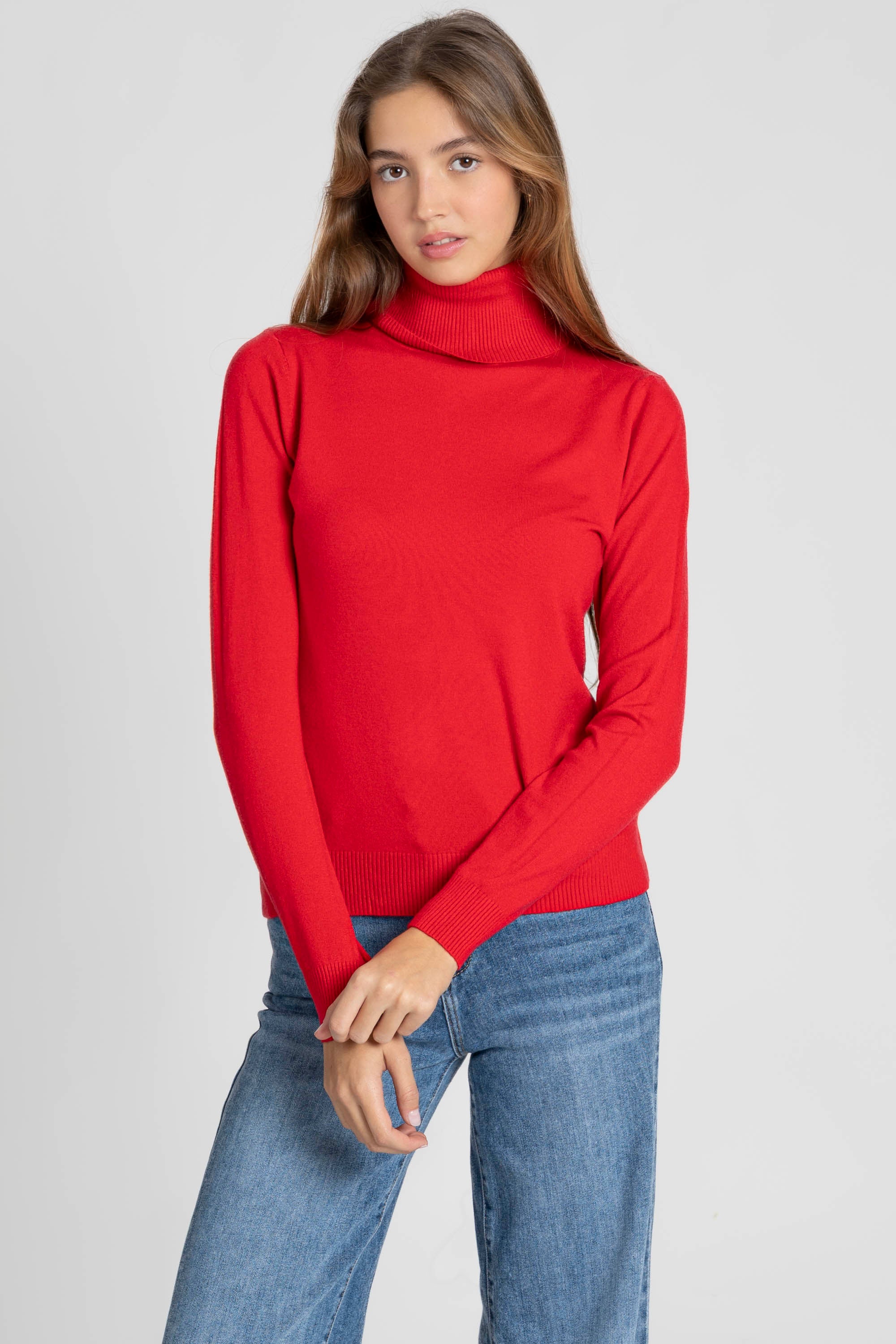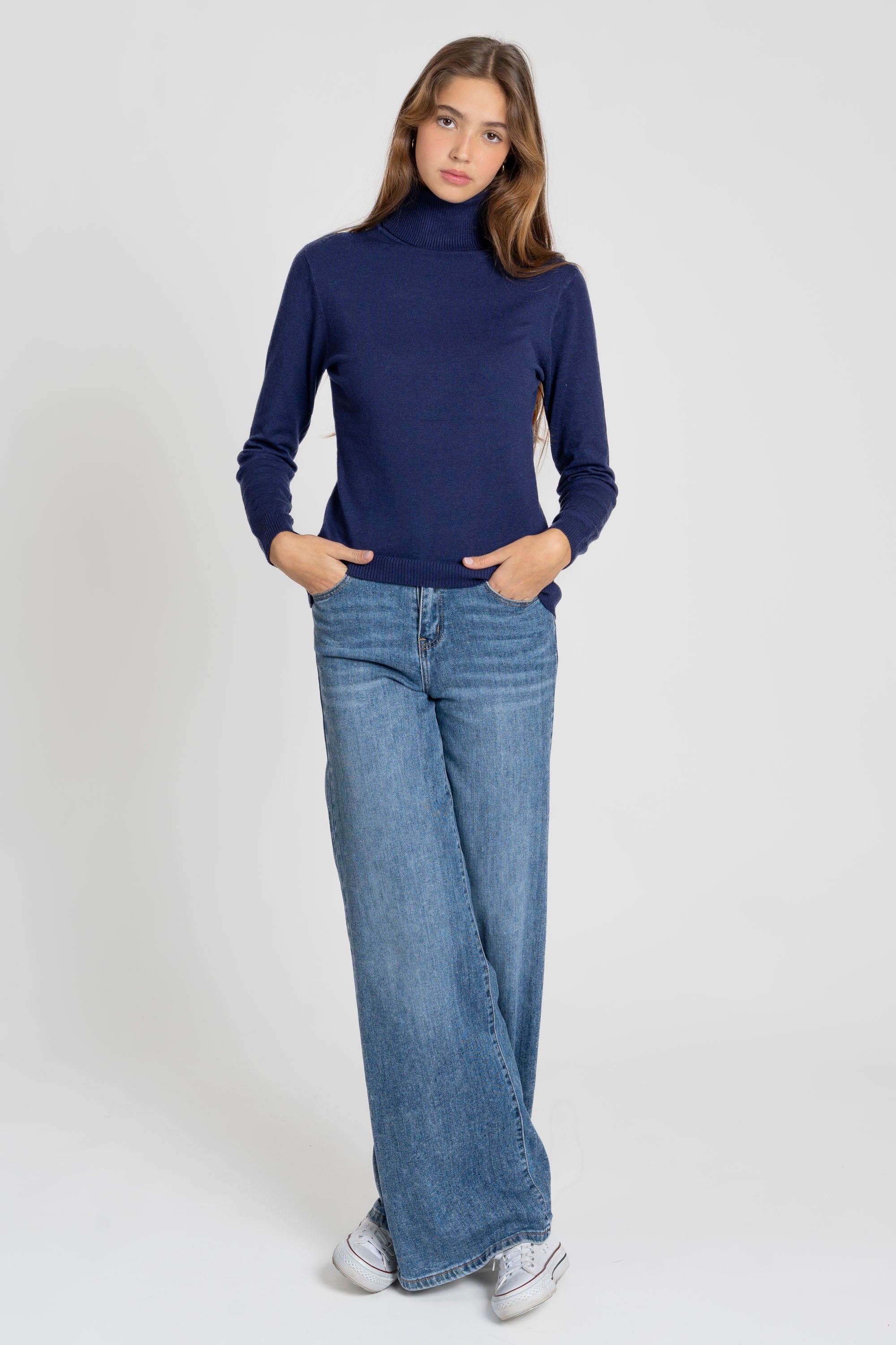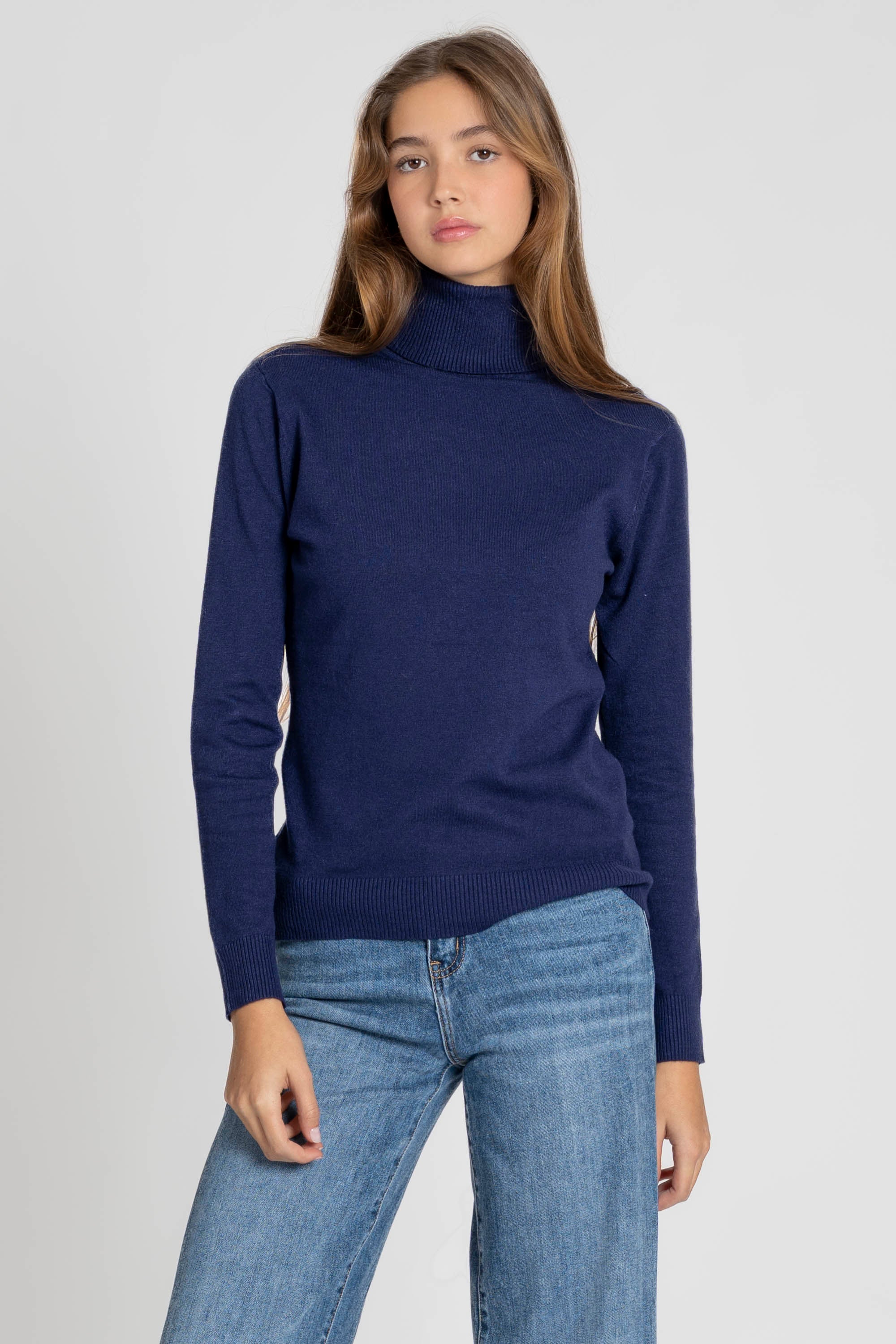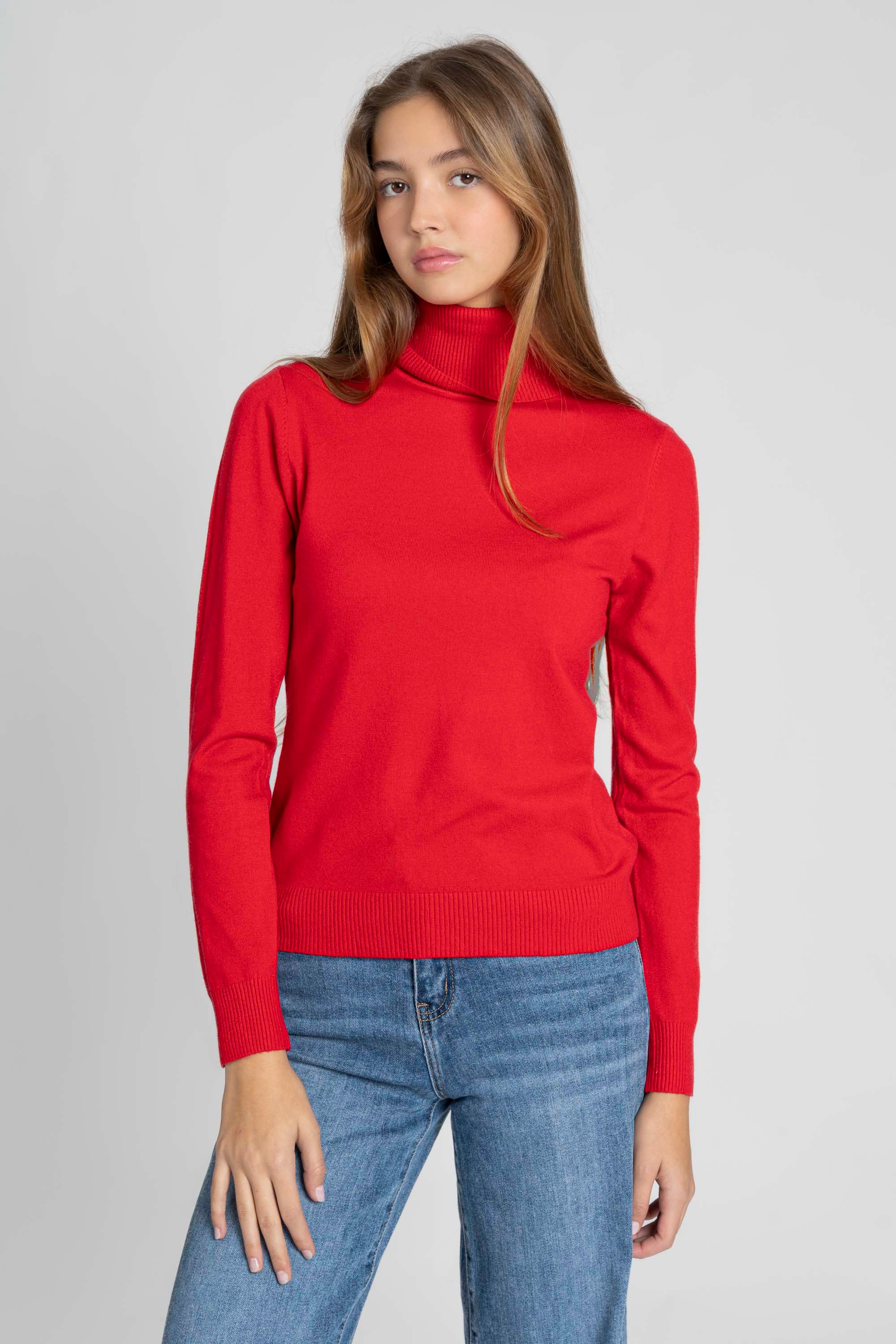 Tejido de punto. Diseño recto. Diseño básico. Cuello vuelto. Manga larga. Terminaciones en canalé.