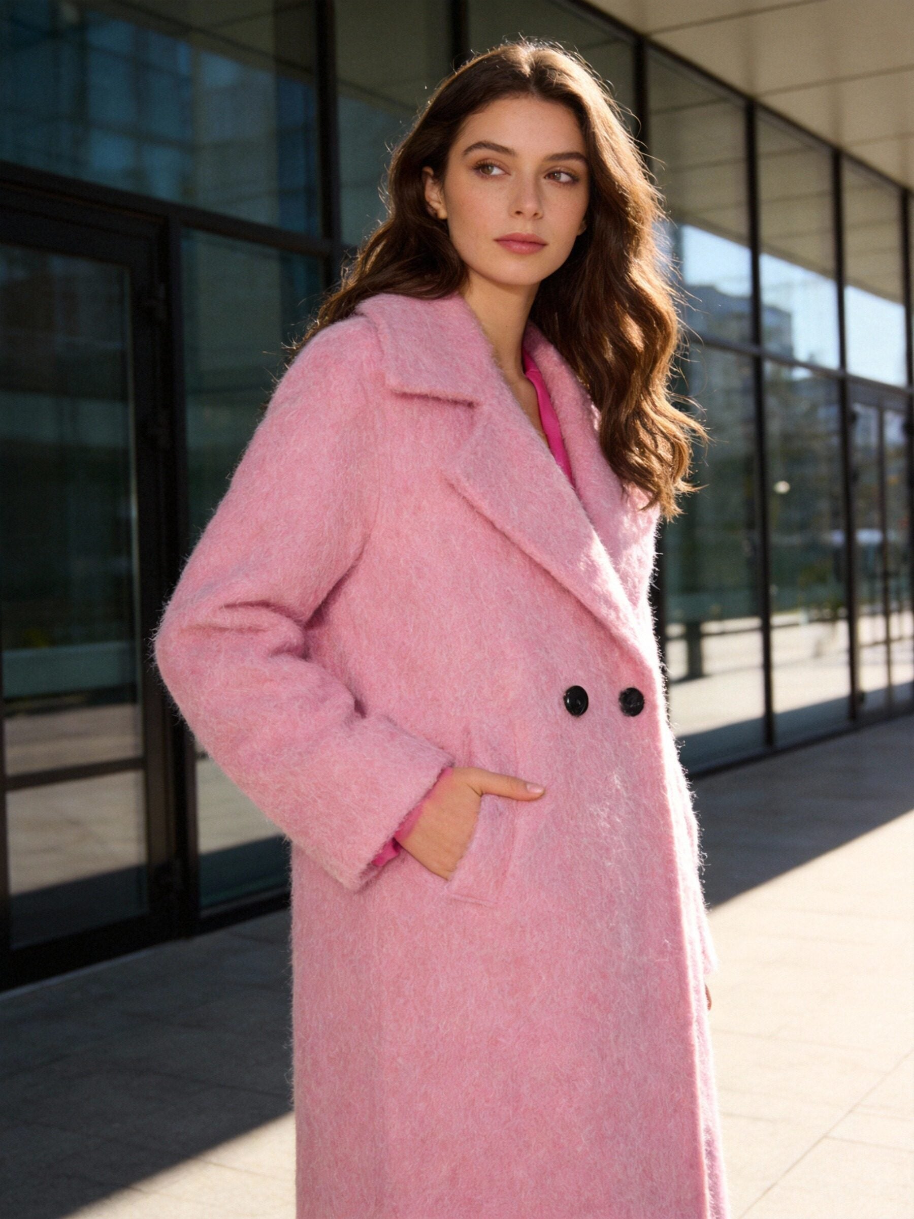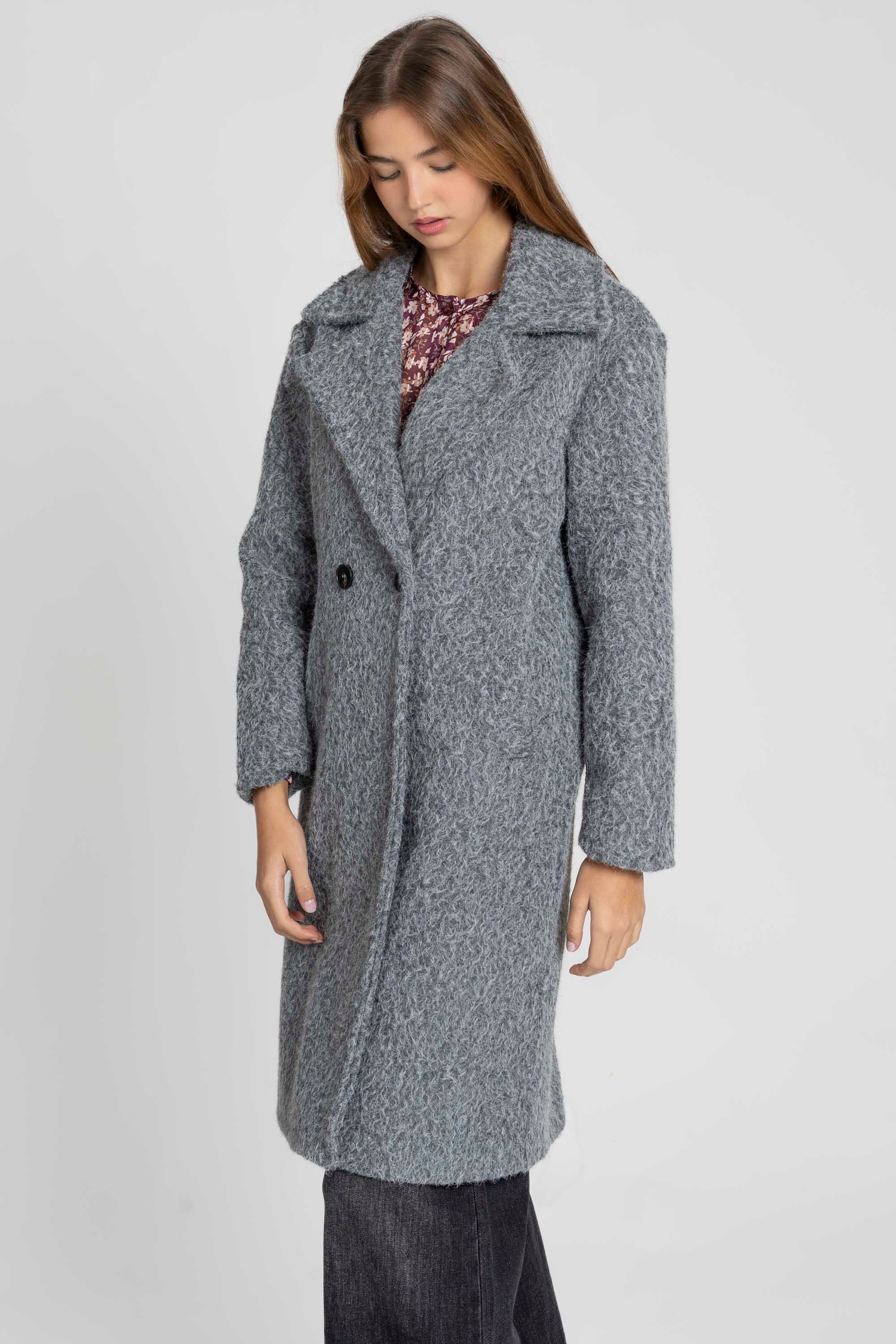 Tejido efecto pelo. Cuello solapa. Manga larga. Bolsillos laterales. Cierre de botones. Interior forrado.