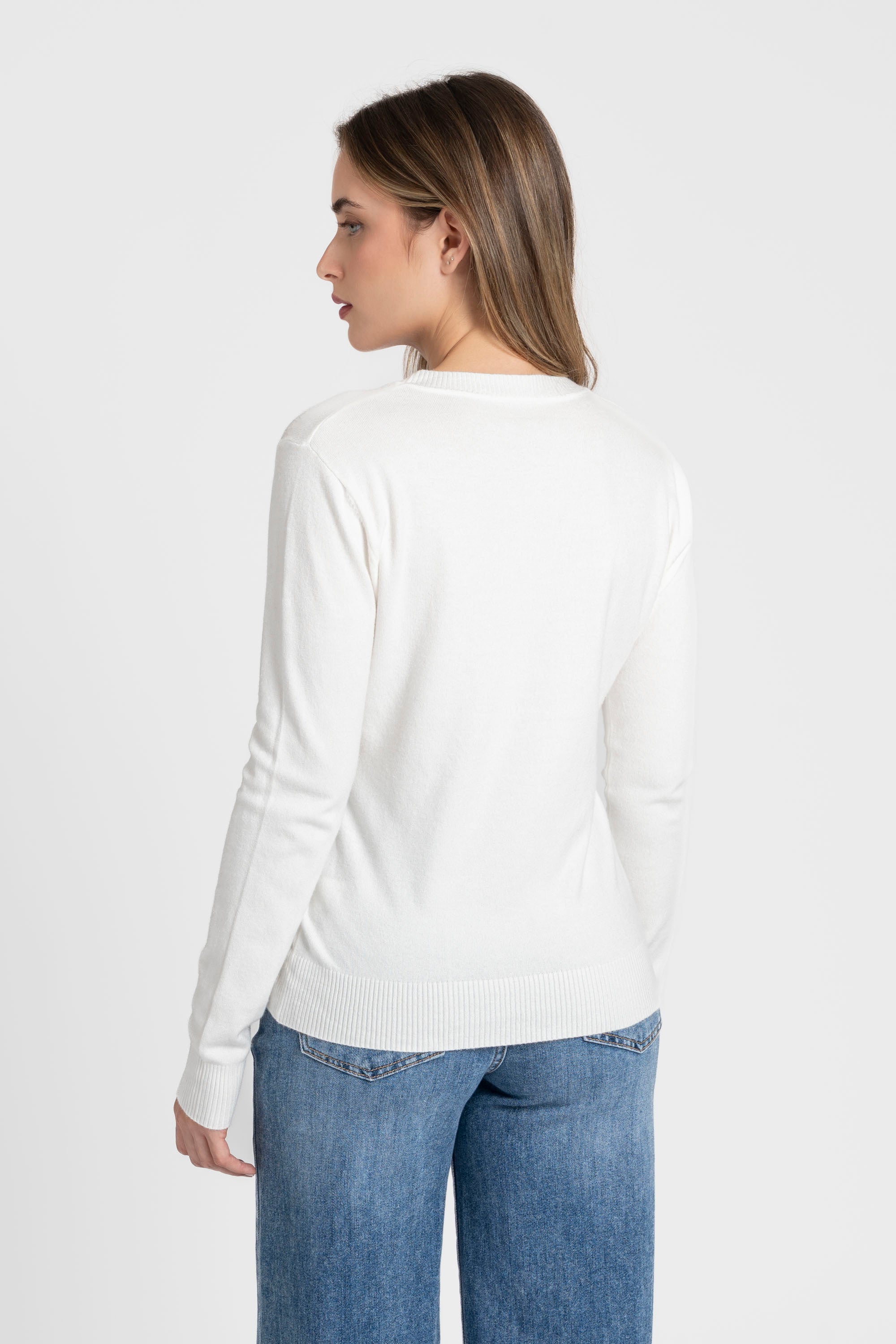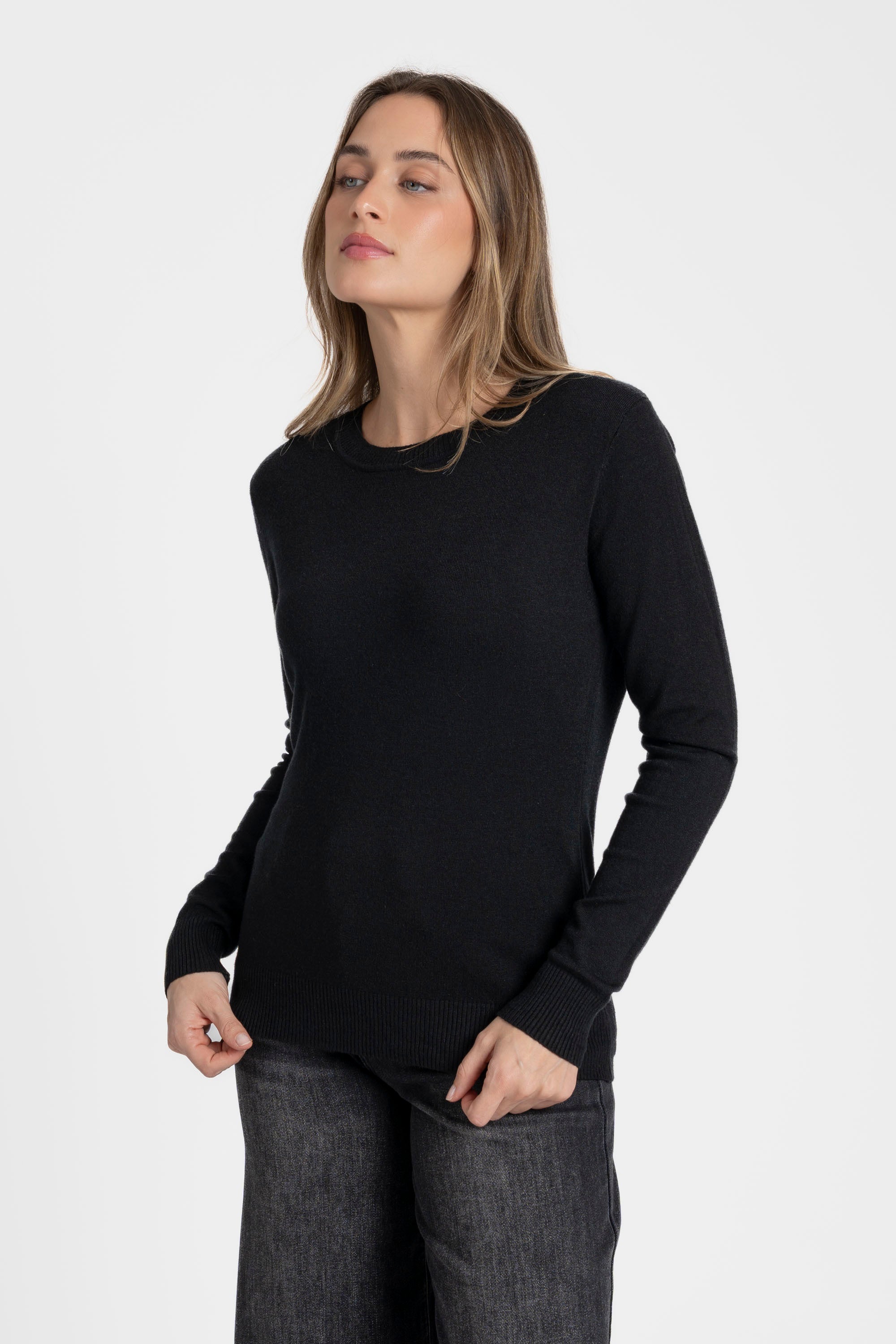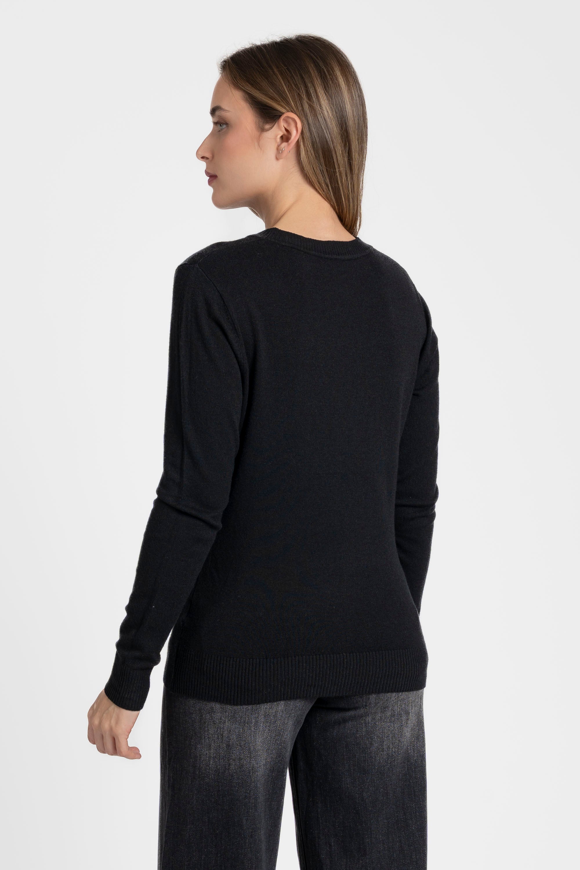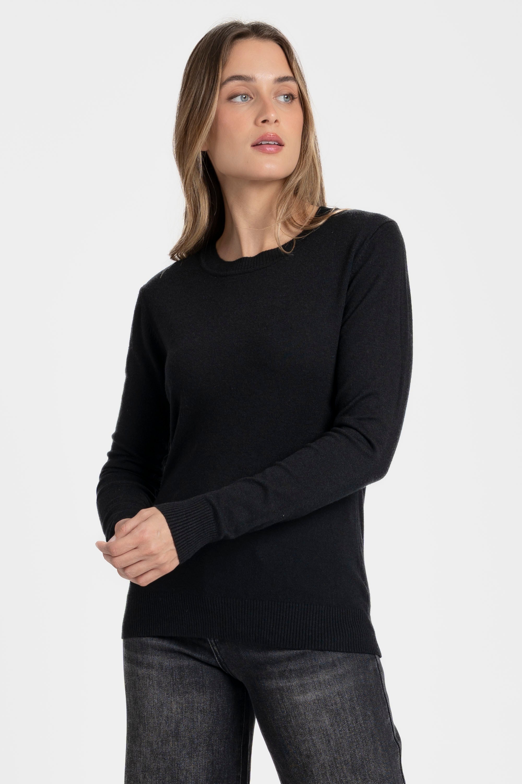 Tejido de punto. Diseño recto. Diseño básico. Cuello redondo. Manga larga. Terminaciones en canalé.