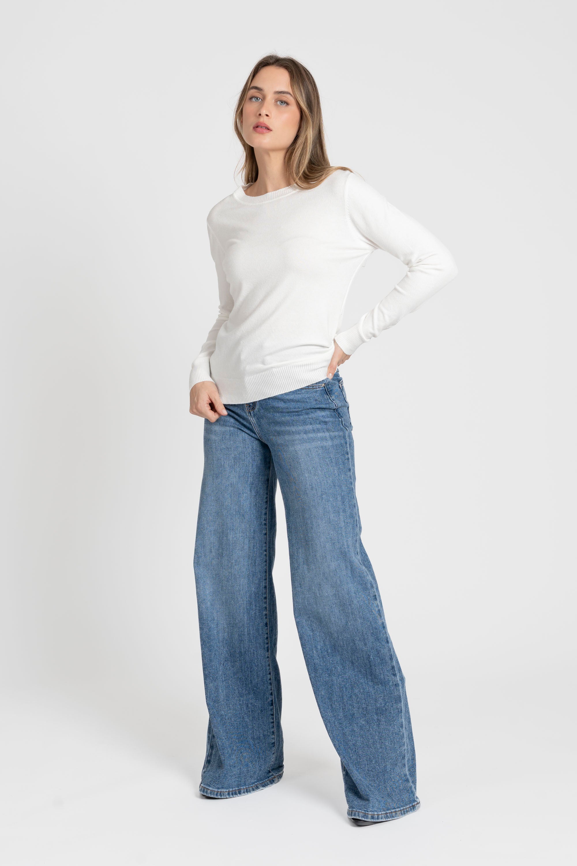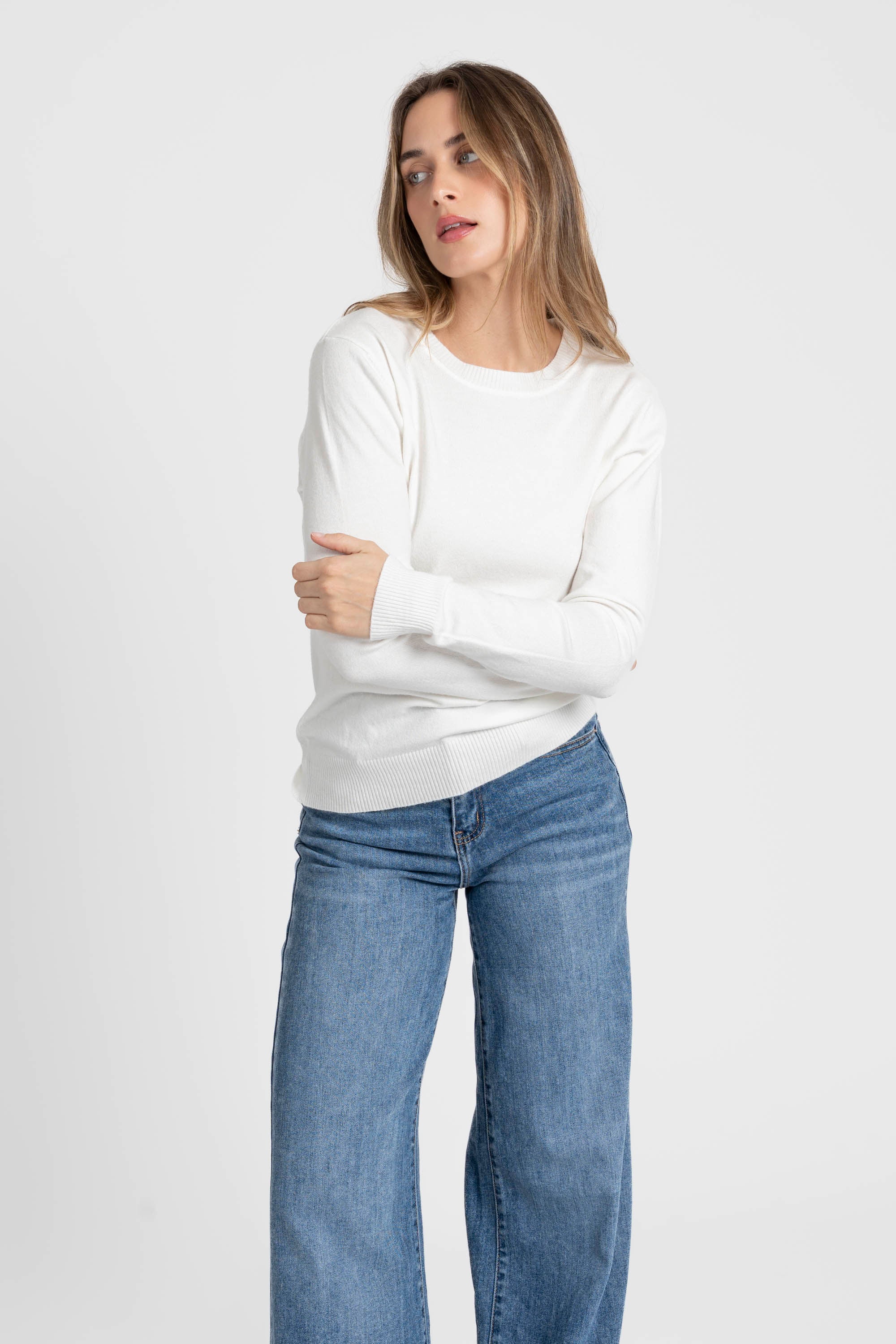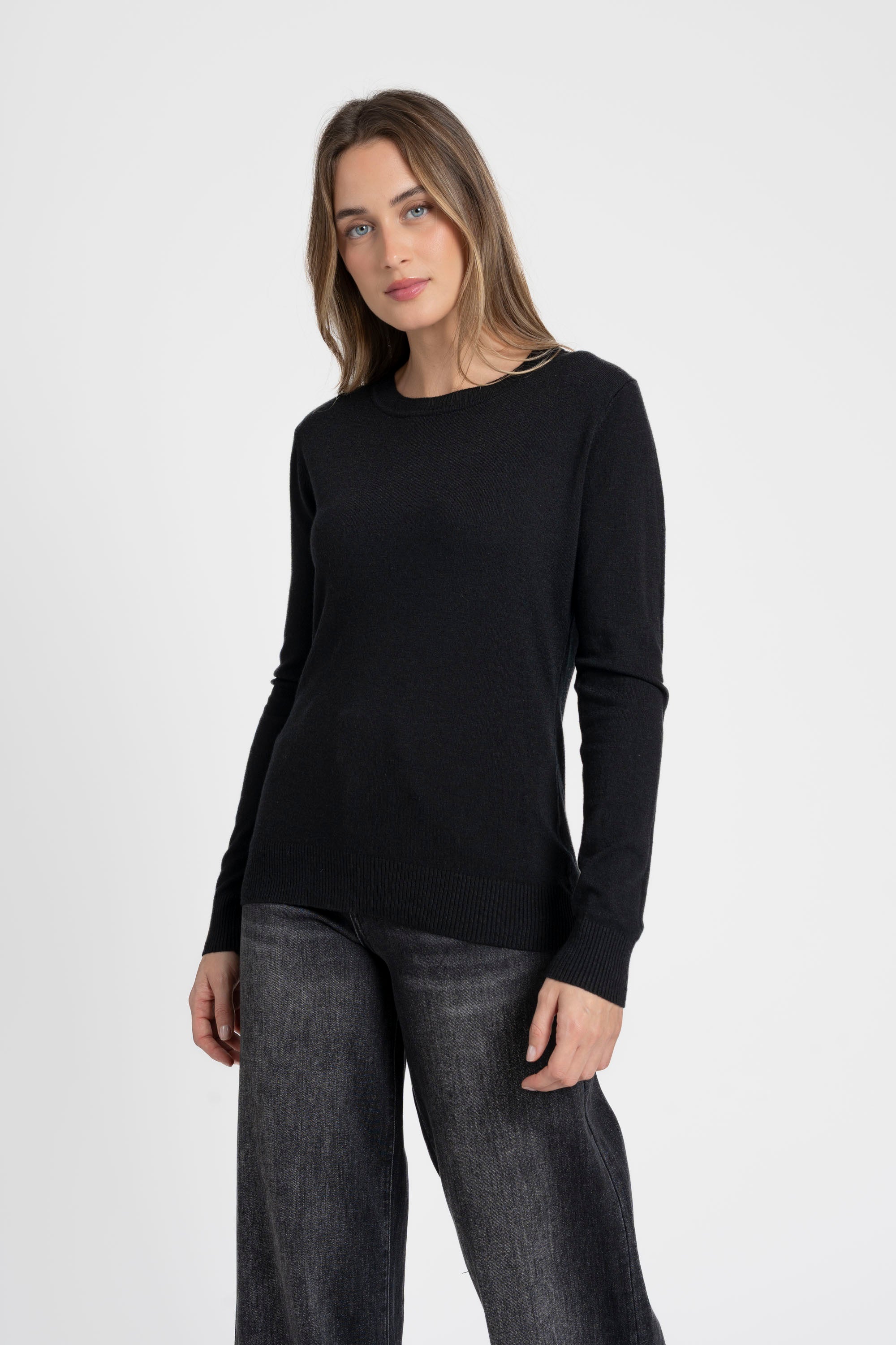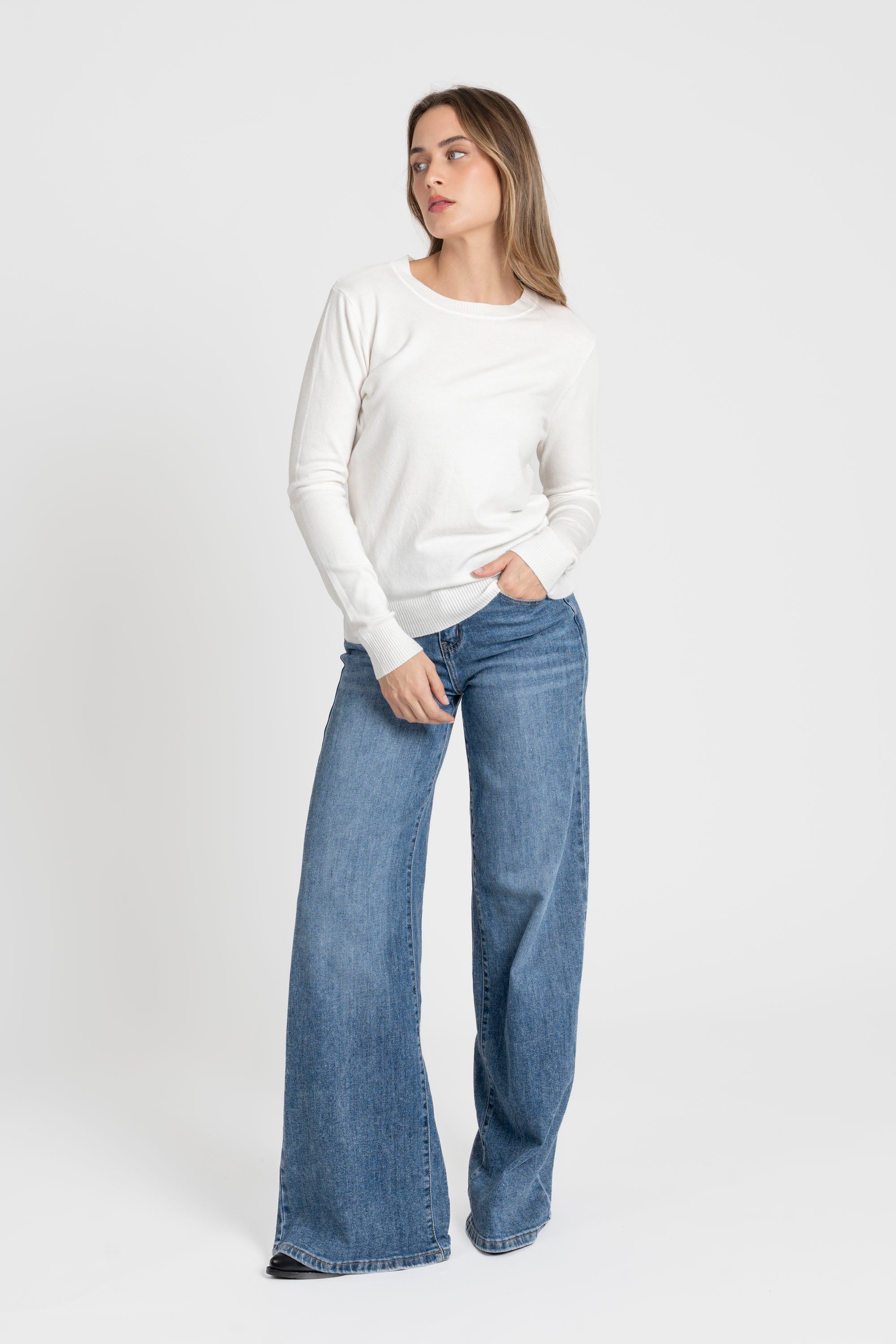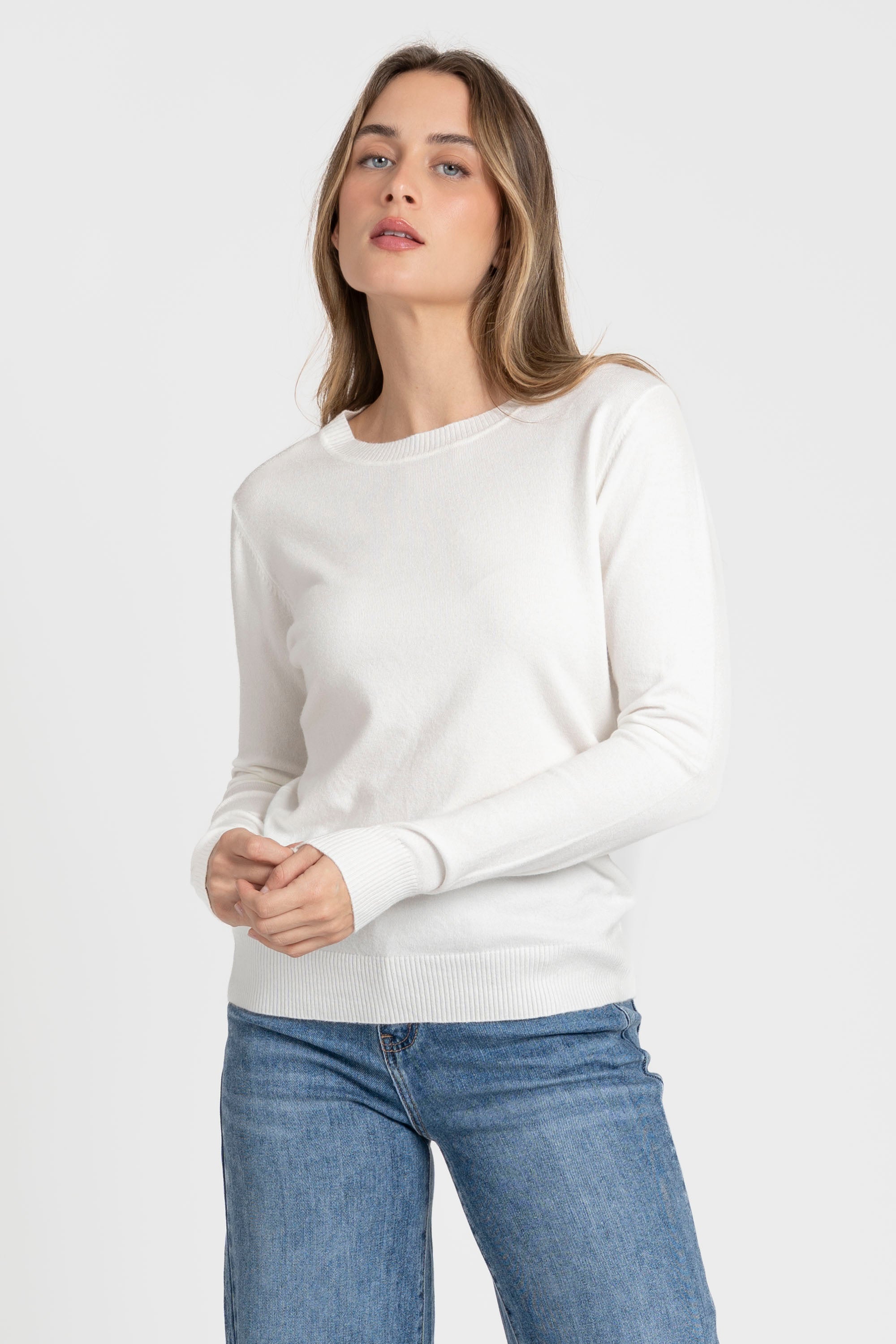 Tejido de punto. Diseño recto. Diseño básico. Cuello redondo. Manga larga. Terminaciones en canalé.