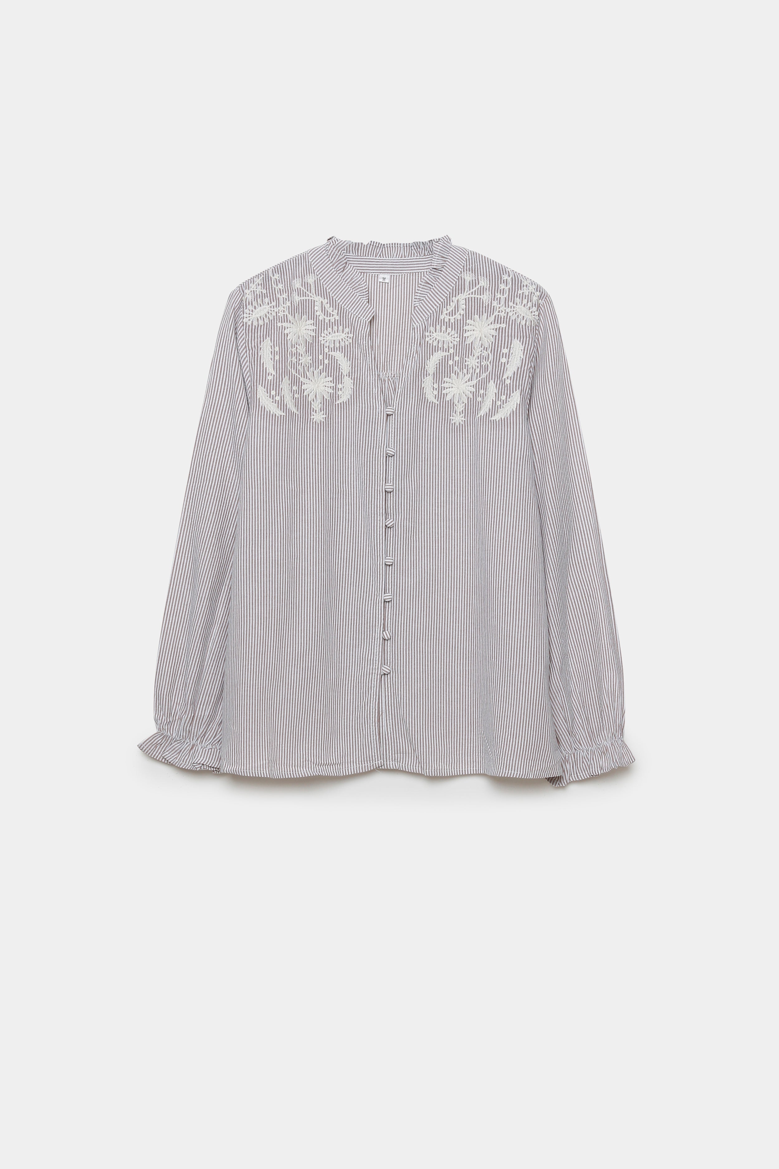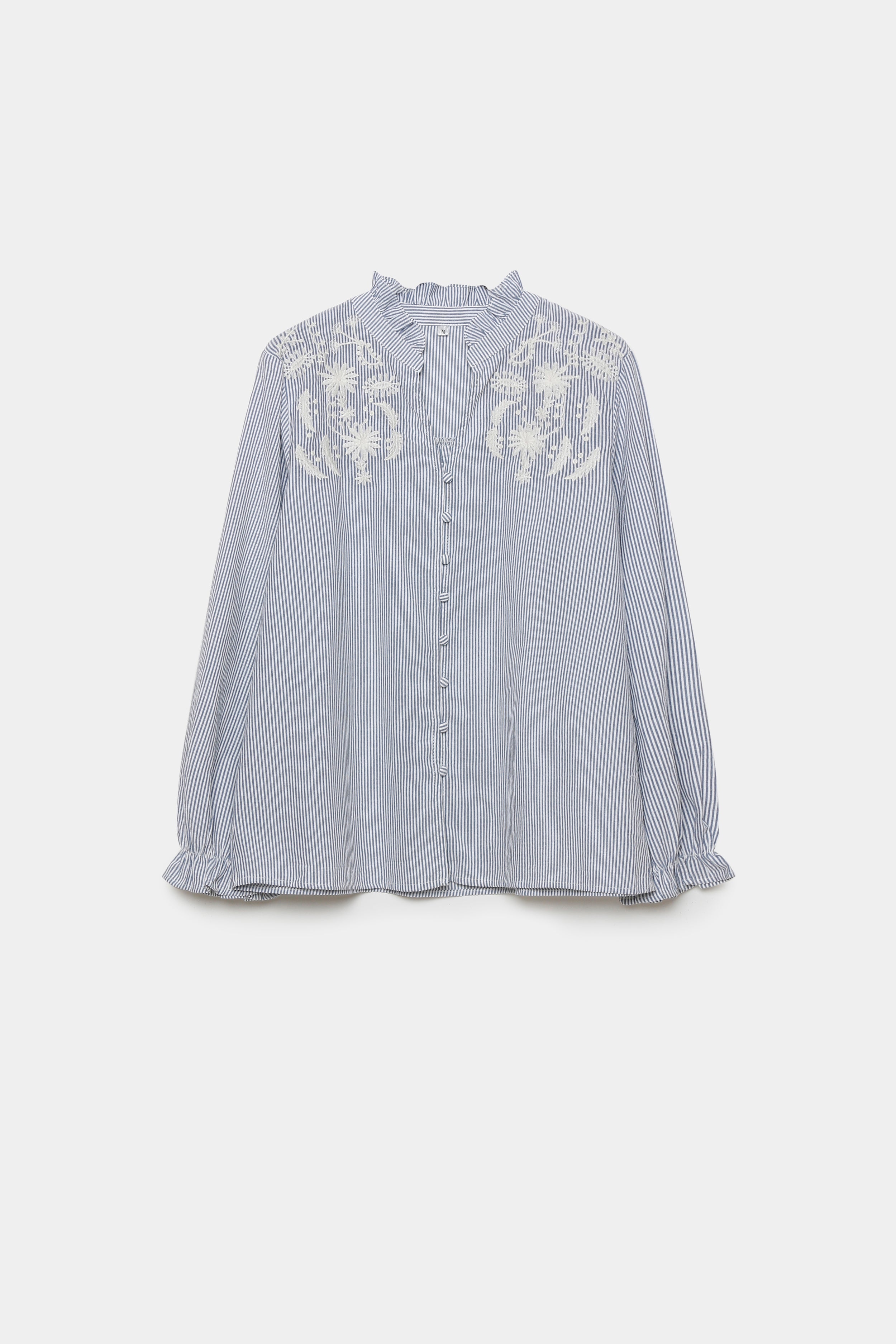 Tejido de algodón. Cuello redondo. Manga larga. Cierre de botones. Detalle bordados.