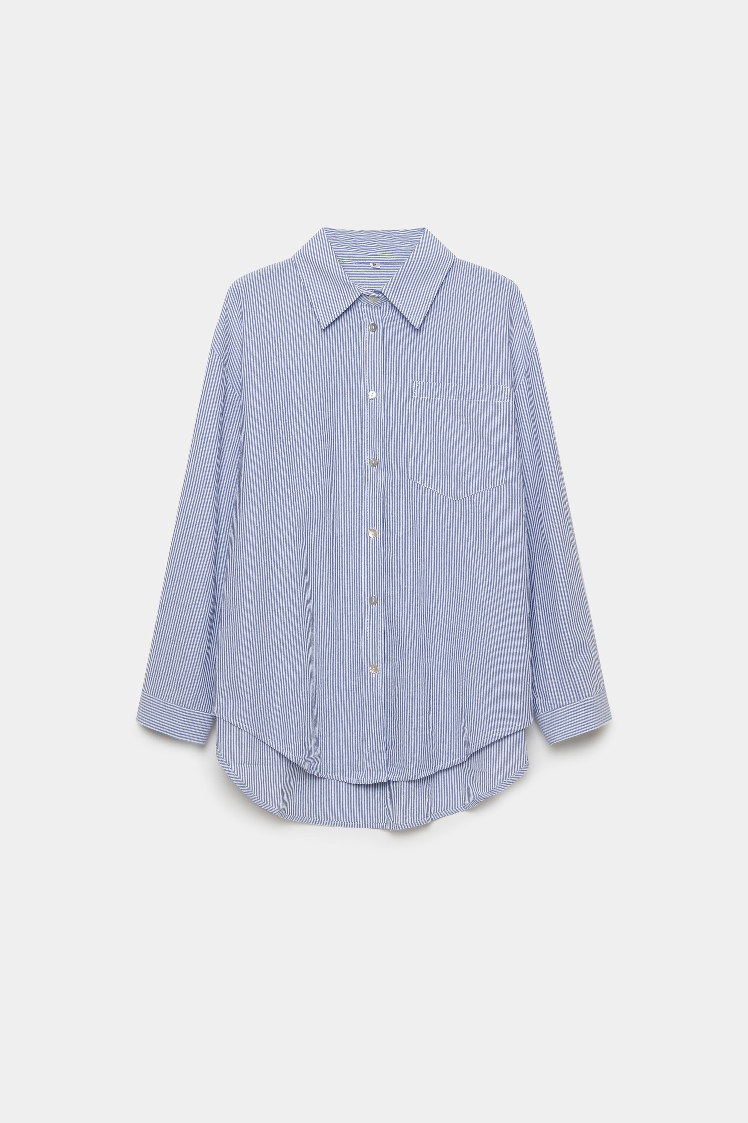 Tejido de algodón. Cuello solapa. Manga larga. Cierre de botones. Bolsillo delantero.