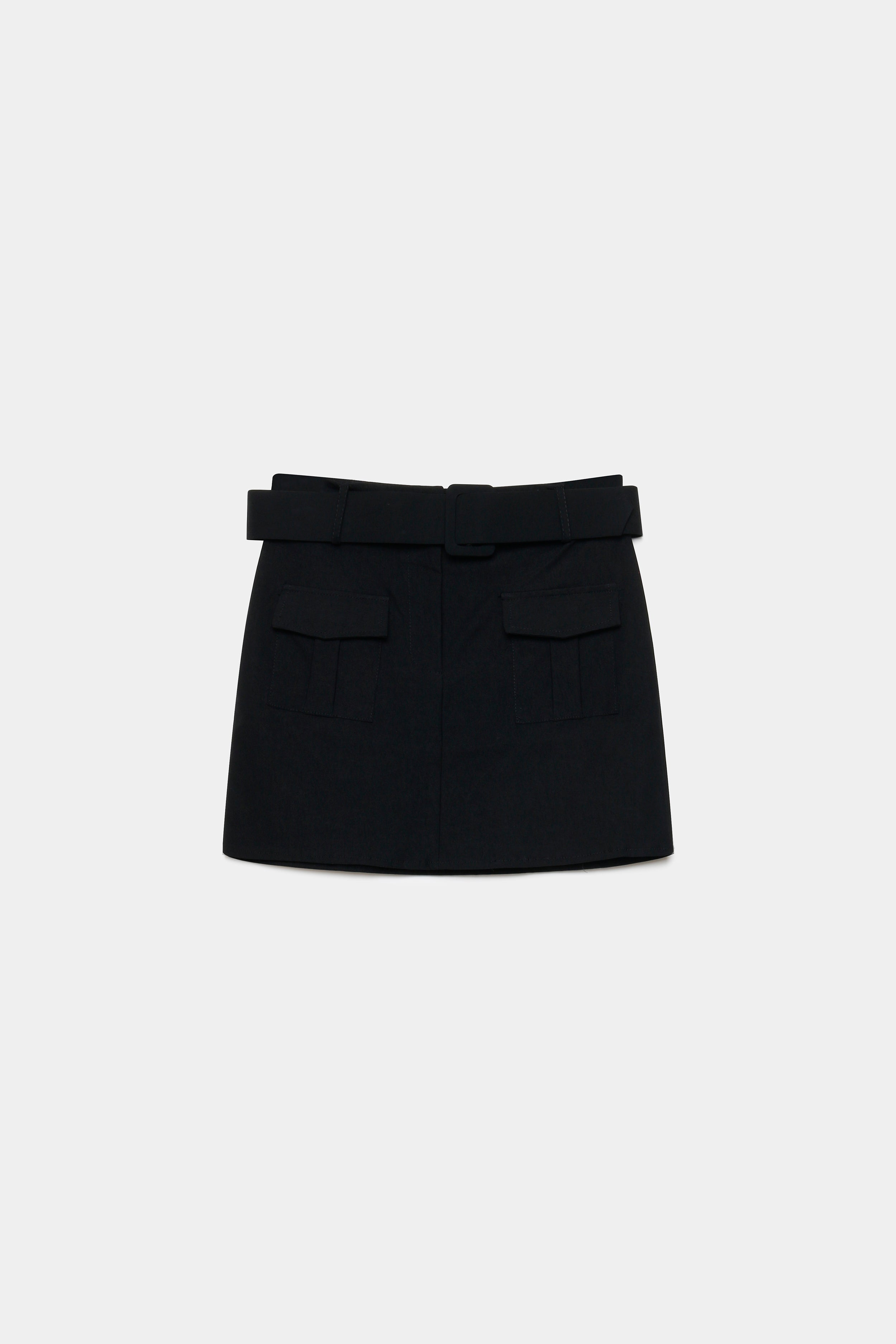 Tejido elástico, modelo ajustado, cierre y botón. Bolsillos frontales. Cinturón del mismo tejido.