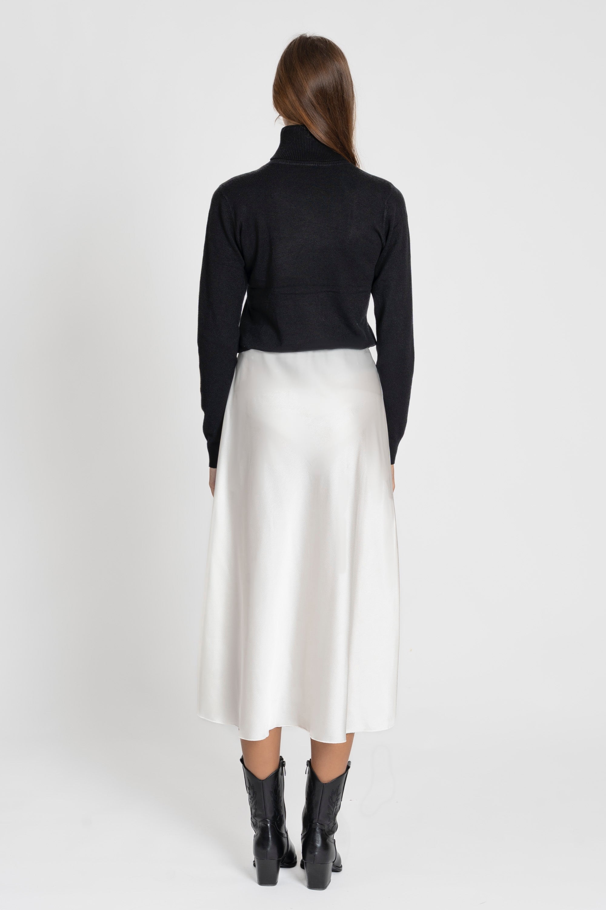 Tejido satinado. Diseño ajustado. Diseño midi. Diseño recto. Cintura elástica.