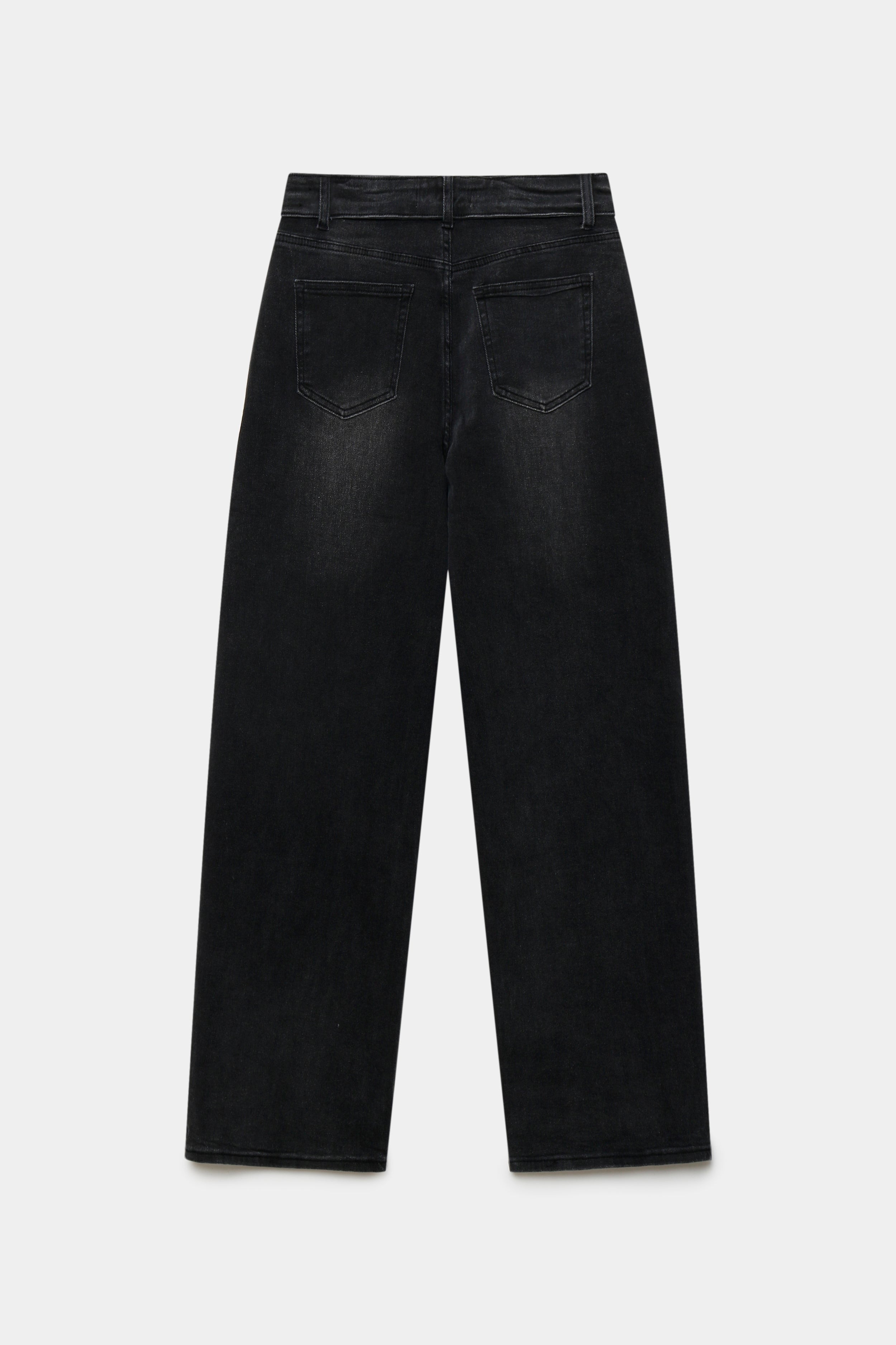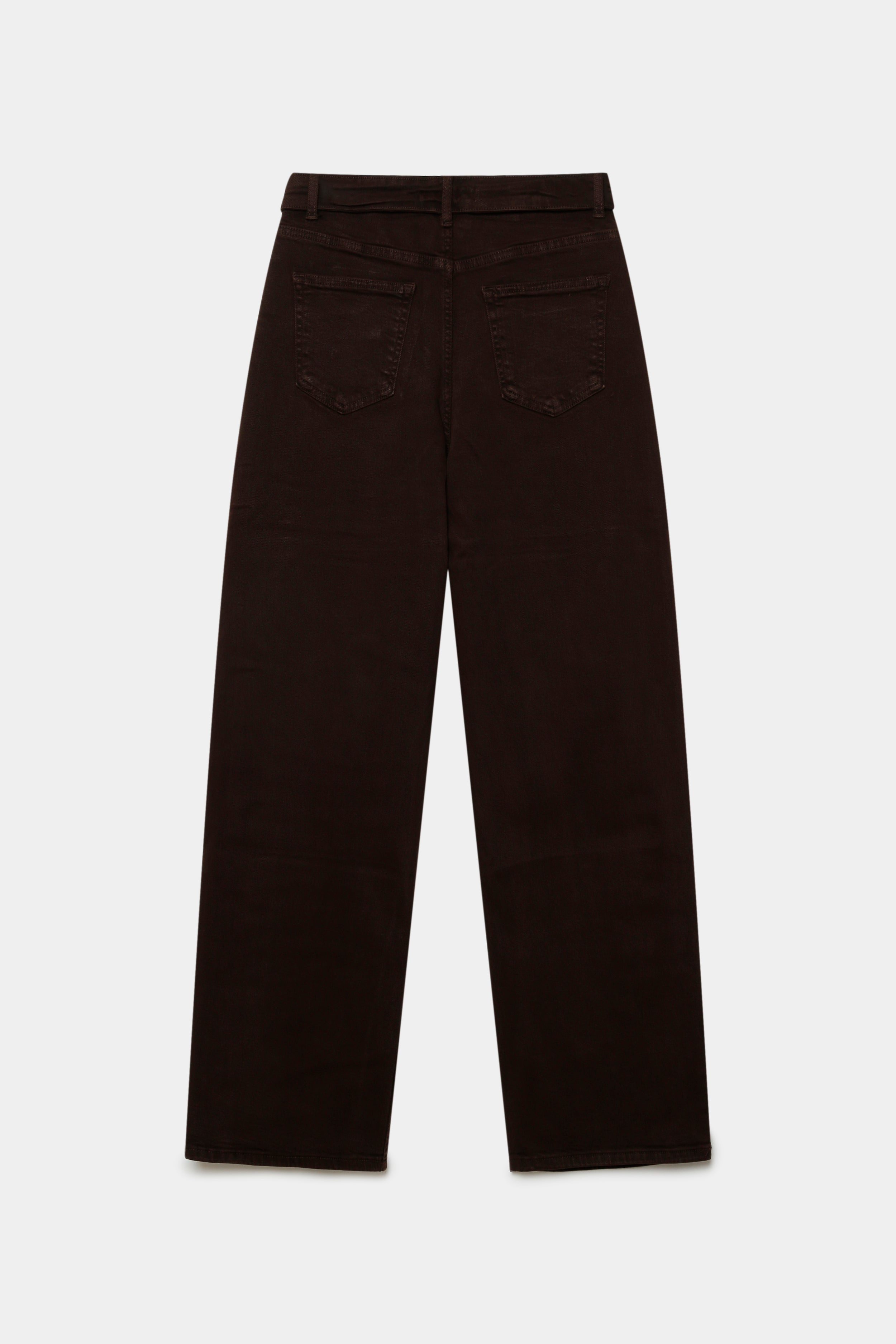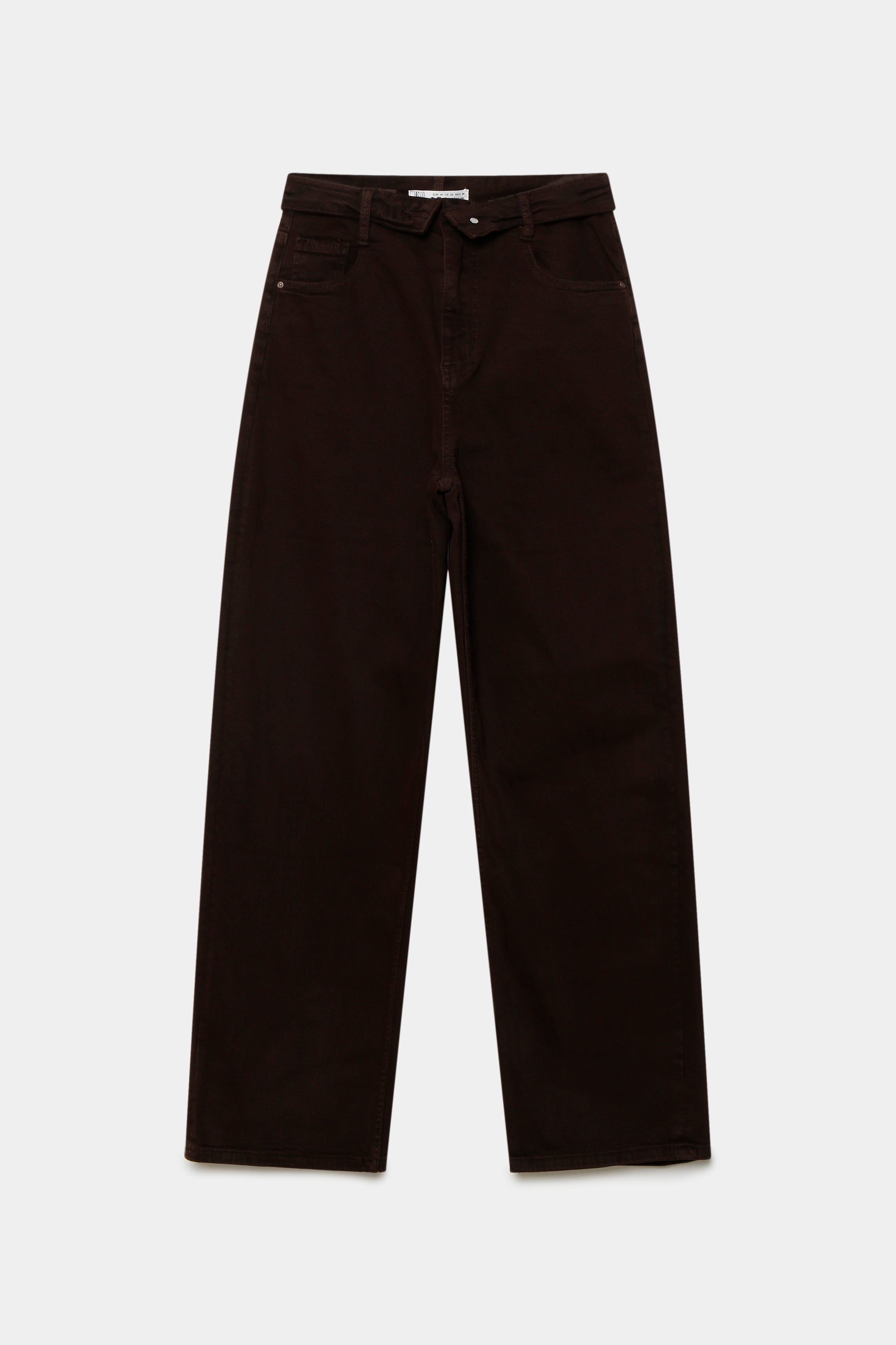 Tejido mezcla de algodón. Tejido tejano vaquero. Tejido elástico. Diseño recto. Diseño largo. Tiro alto.  Cinco bolsillos. Cierre de cremallera y botón. Trabillas.