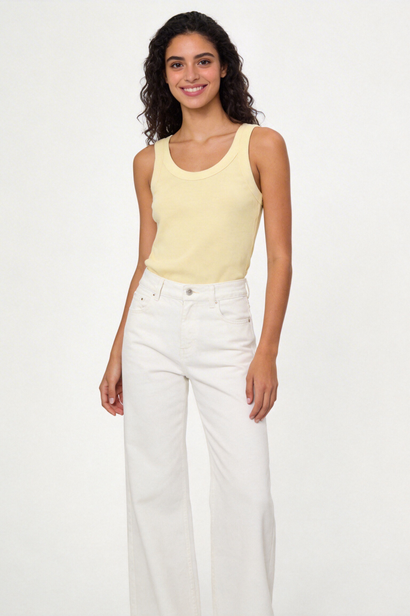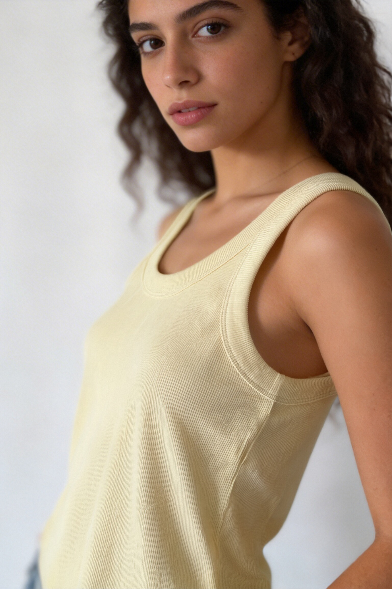 Top canalé. Escote redondo y tirantes anchos. Bajo recto. Corresponde desde una S hasta una L.