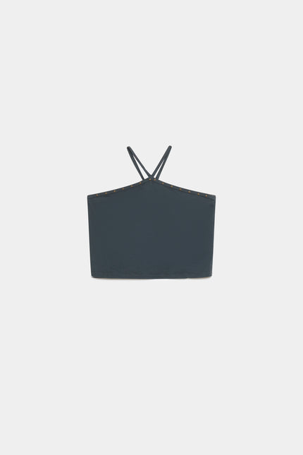 Tejido de algodón. Sin mangas con tirantes en la espalda. Detalle de estrellas en la parte frontal. Disponible en varios colores.