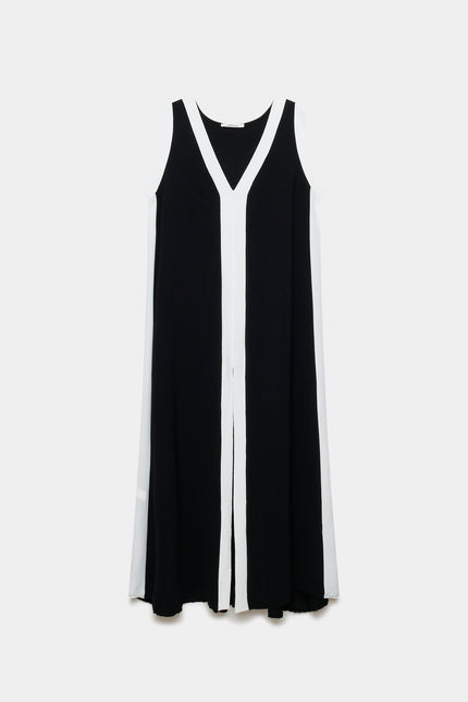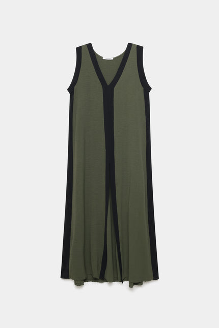 Tallaje grande, aconsejamos una talla menos de la habitual. Tejido fluido. Cuello pico. Manga sisa.