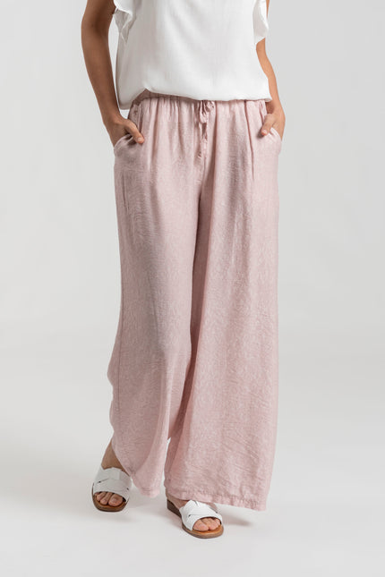 Tejido fluido. Diseño culotte. Diseño estampado. Bolsillos laterales. Diseño recto. Cintura elástica.