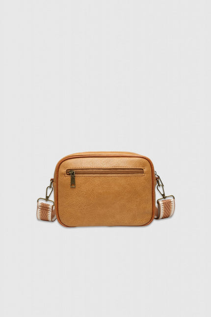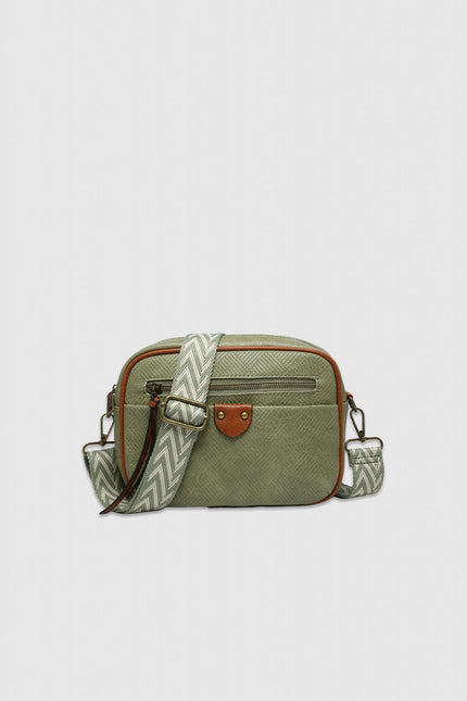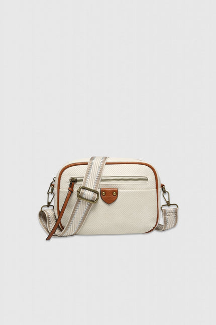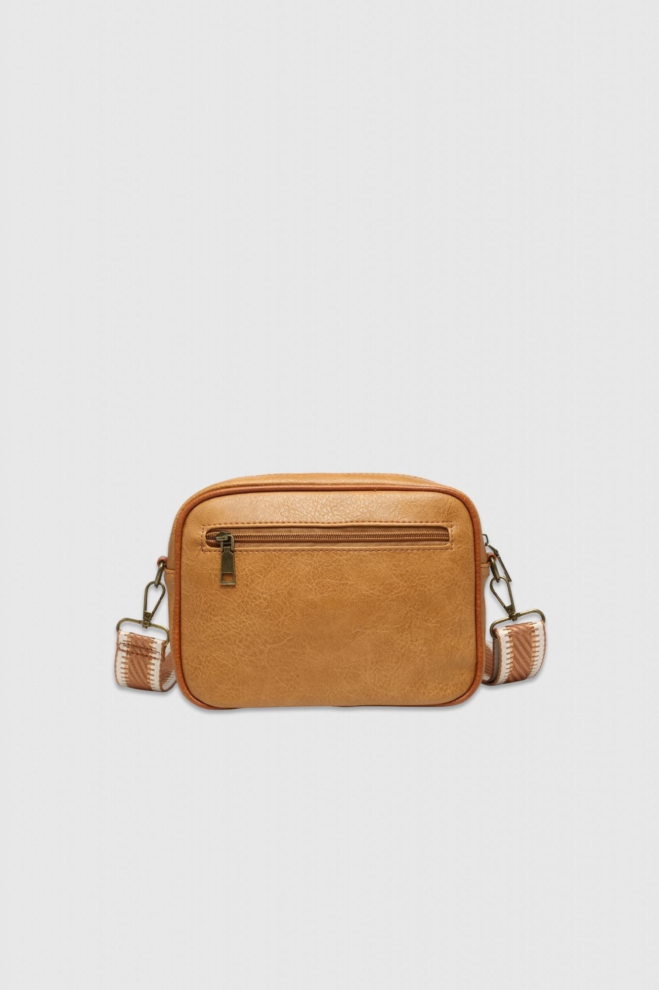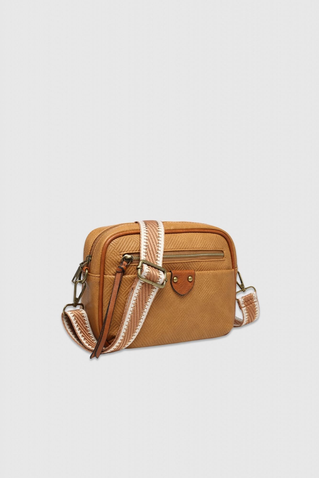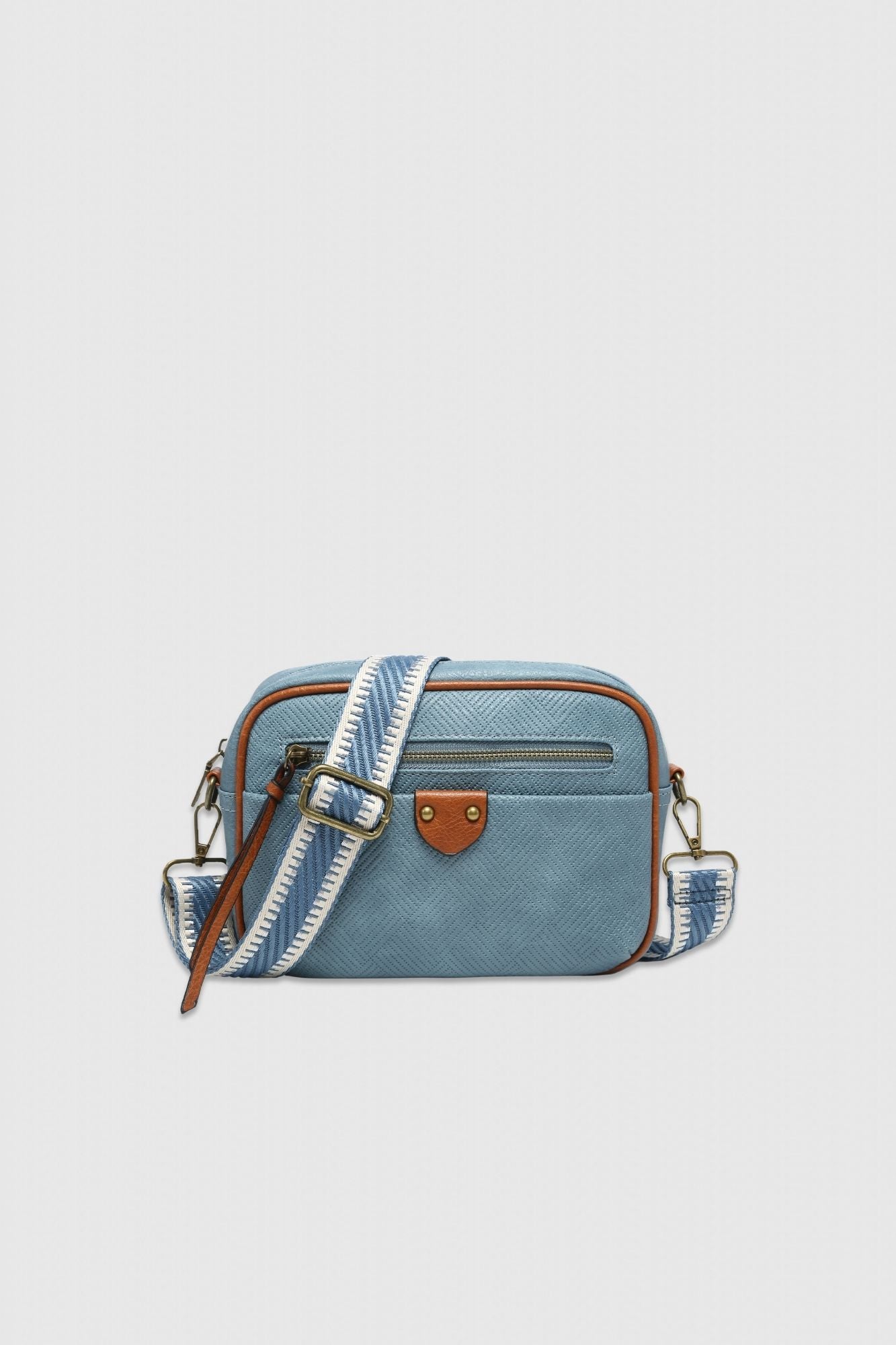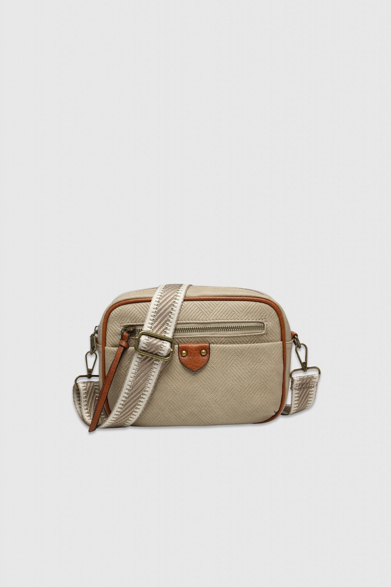 Tejido combinado. Tamaño pequeño. Diseño bandolera. Interior con bolsillo. Cierre de cremallera superior. Asa larga ajustable y extraíble. Bolsillo exterior. Forrado.
